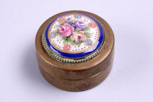 Doosje van papiermaché met porselein plaquette
