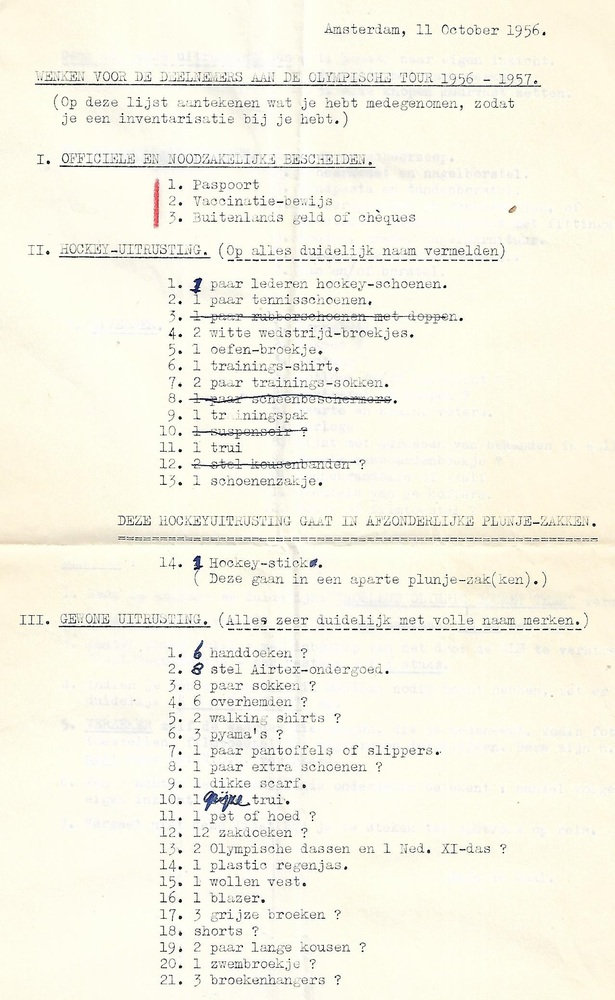 vliegticket Willem Honnebier hockeykeeper. Olympisch...