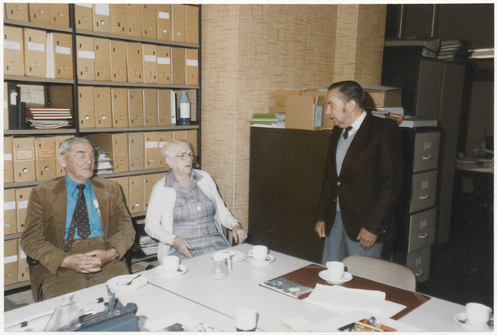 Rechts dhr. Blom, medewerker, links voormalig bode v...
