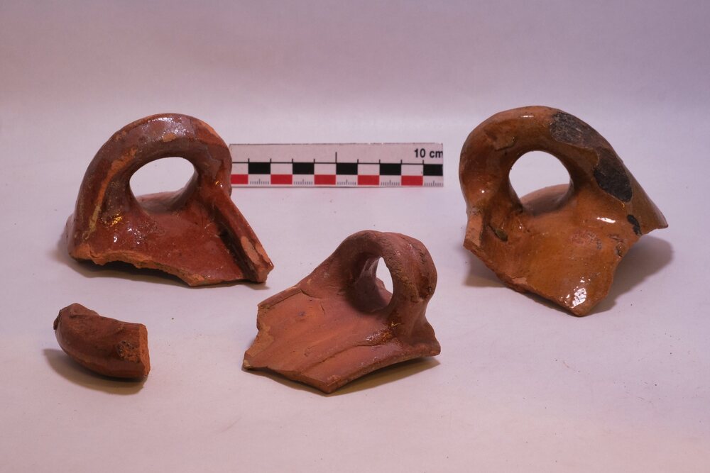 Vondstmateriaal, aardewerk/steengoed/ijzer/been/mortel,