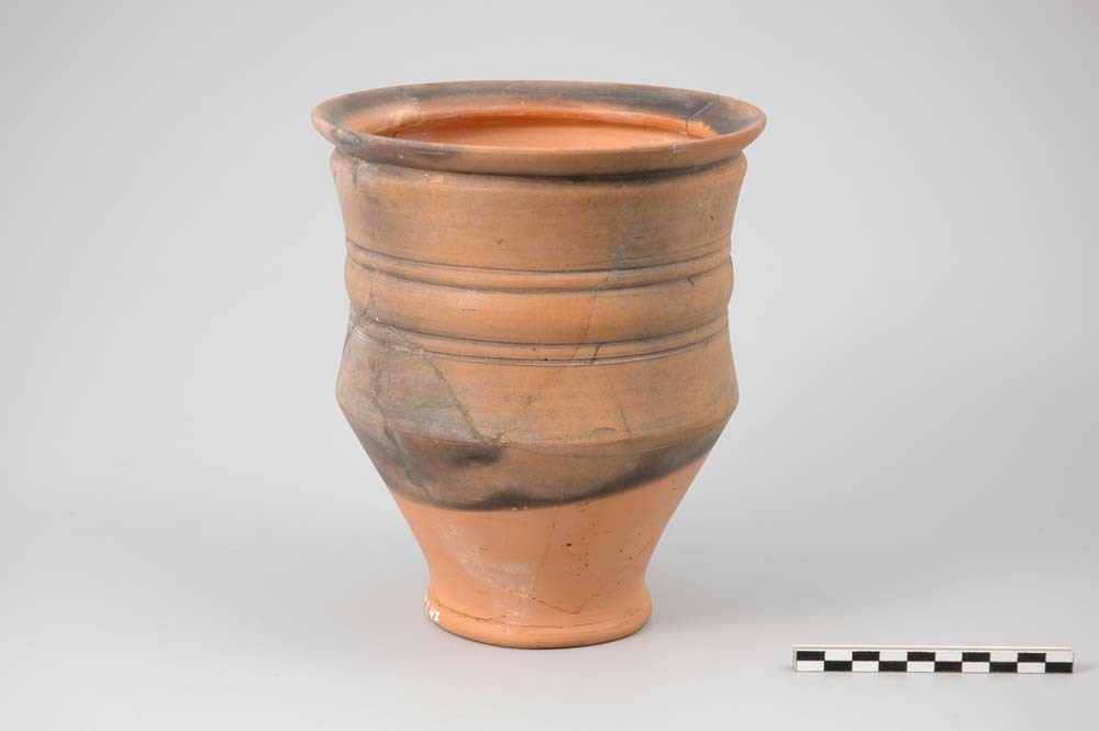 Gordelbeker van gladwandig oranje-rossig aardewerk u...