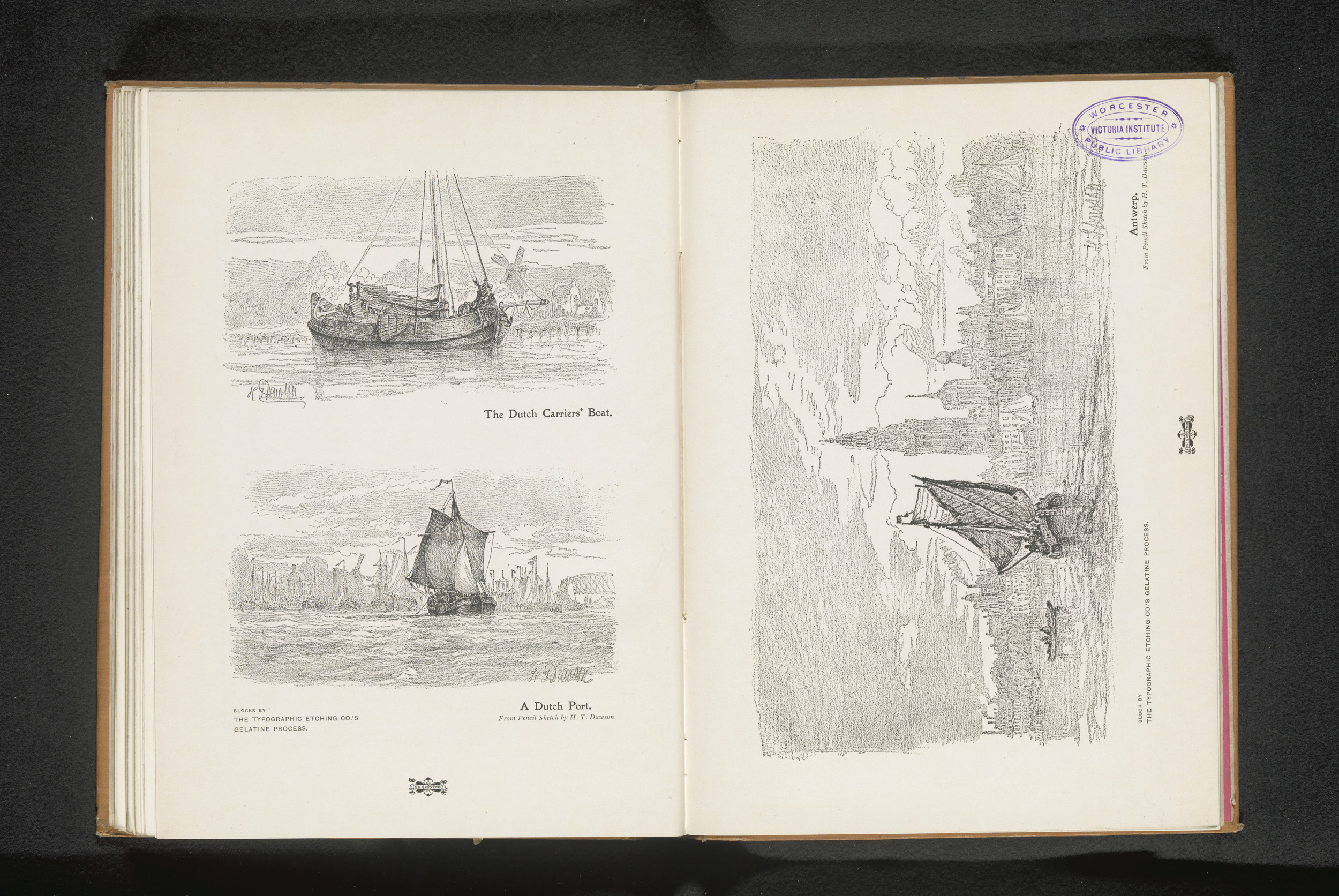 Reproductie van een tekening van een zeegezicht met ...