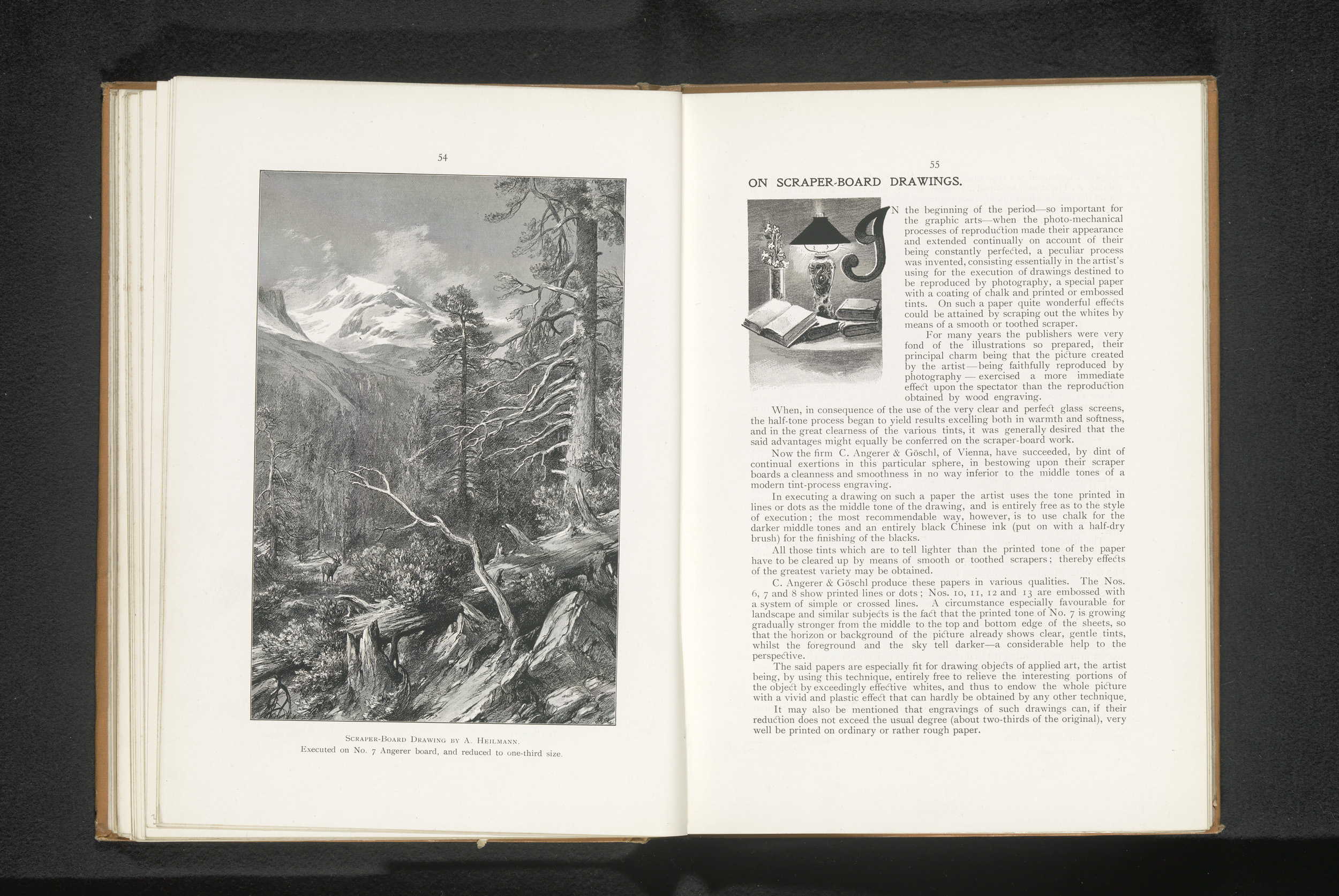 Reproductie van een tekening van een landschap met e...