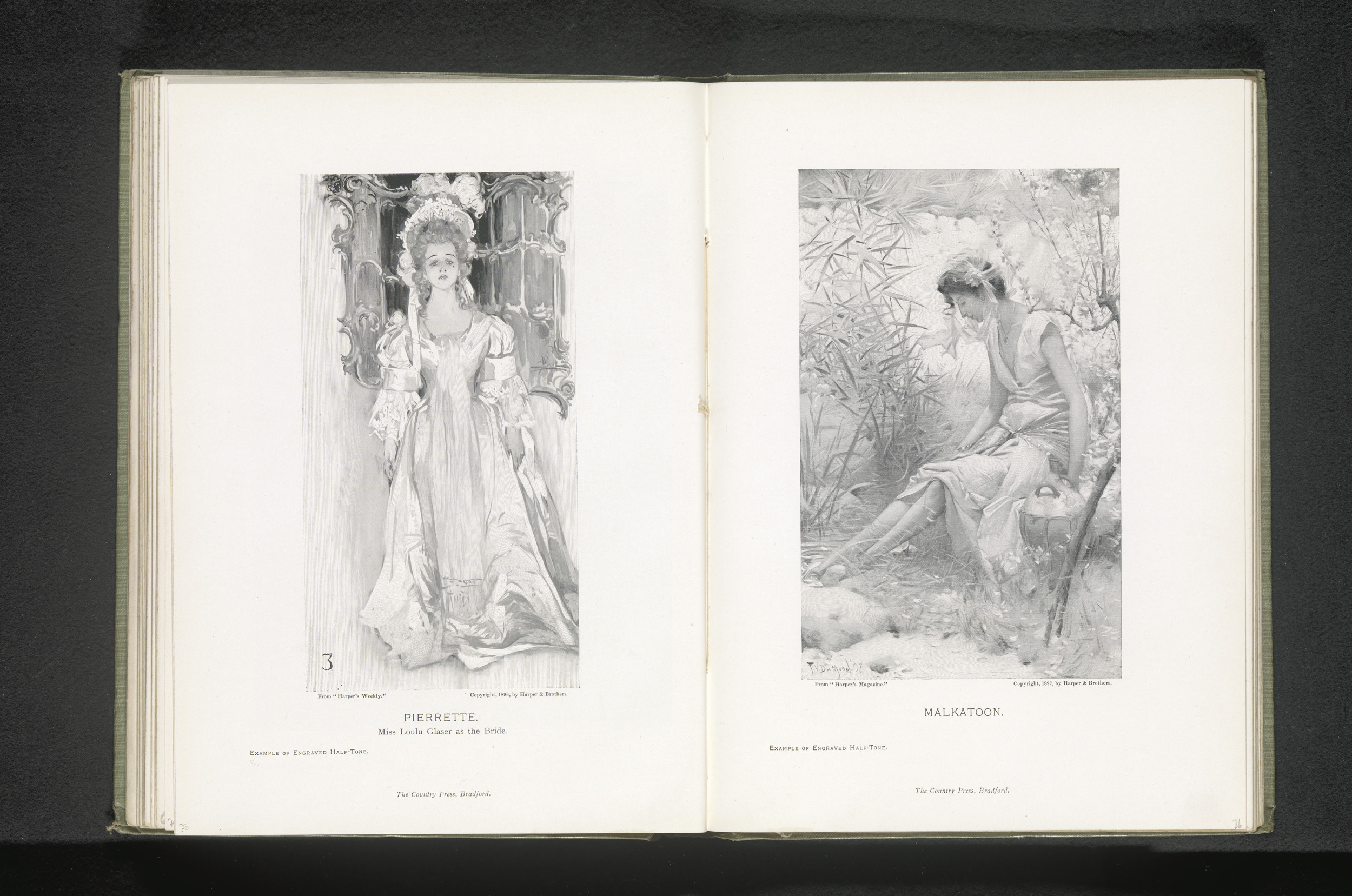 Reproductie van een ontwerp van Lulu Glaser als bruid