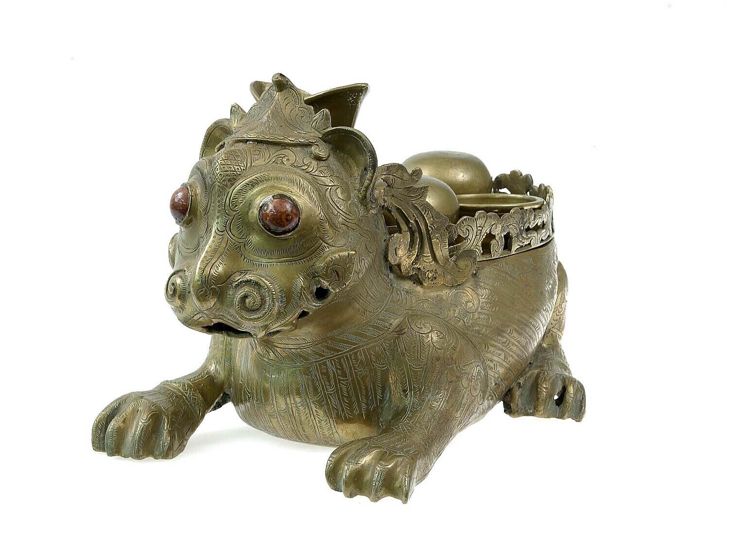 Messingen sirihdoos in de vorm van een leeuw, onderd...