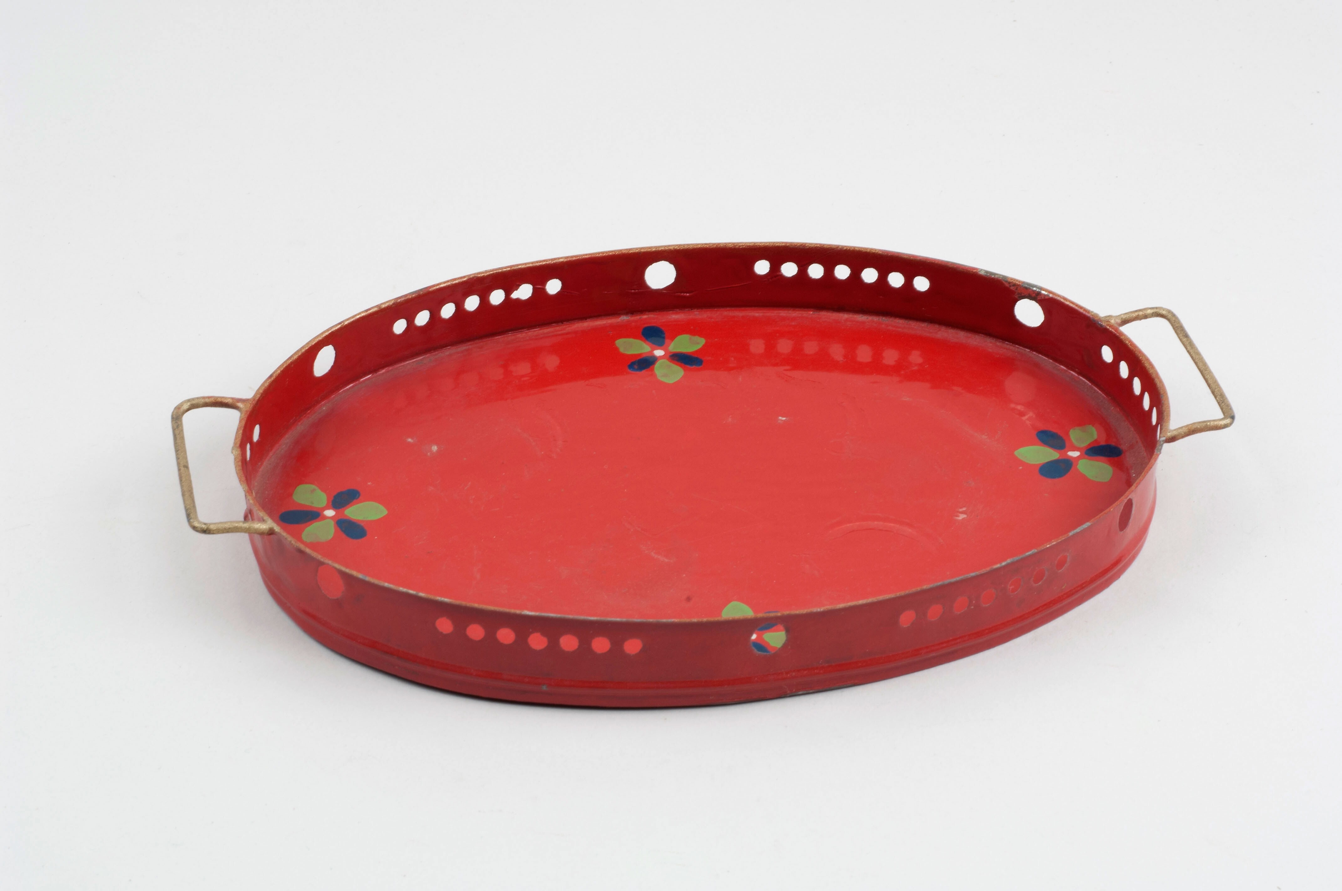Blikken dienblad met geperforeerde rand en versierd ...