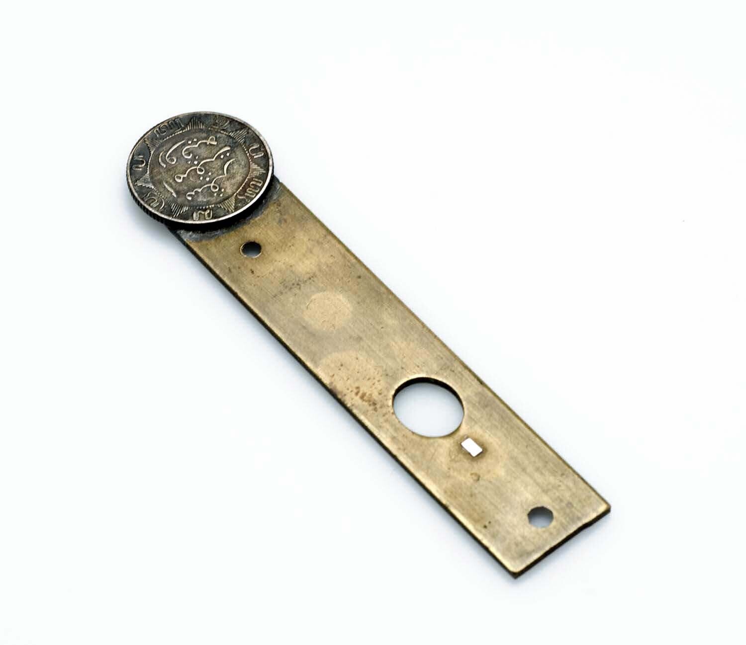 Metalen plaatje met opgesoldeerde kwart gulden uit N...
