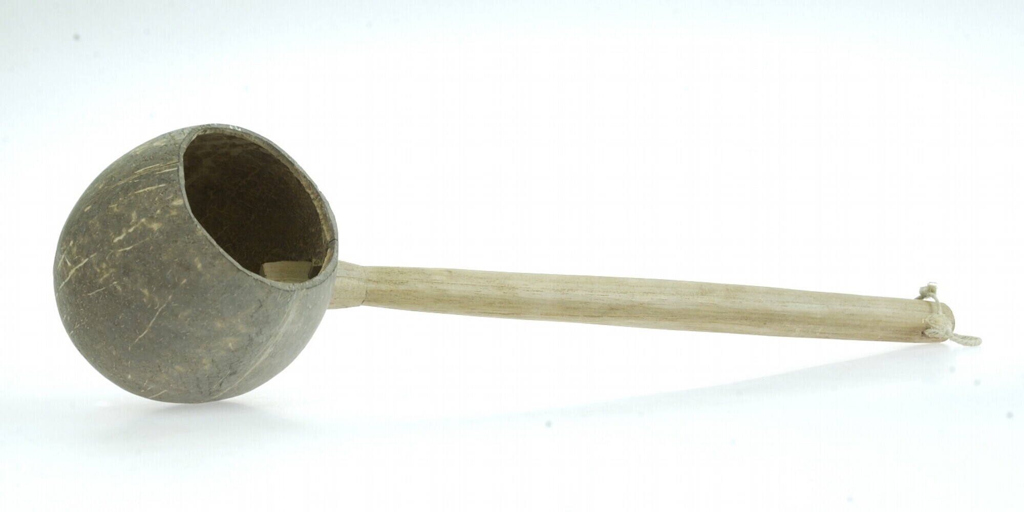 Waterschep van kokosschaal met houten steel