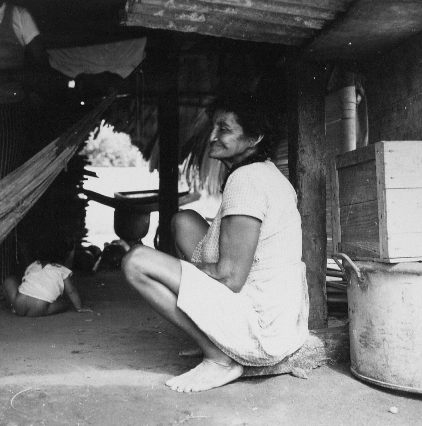 Indiaanse vrouw en interieur van het huis