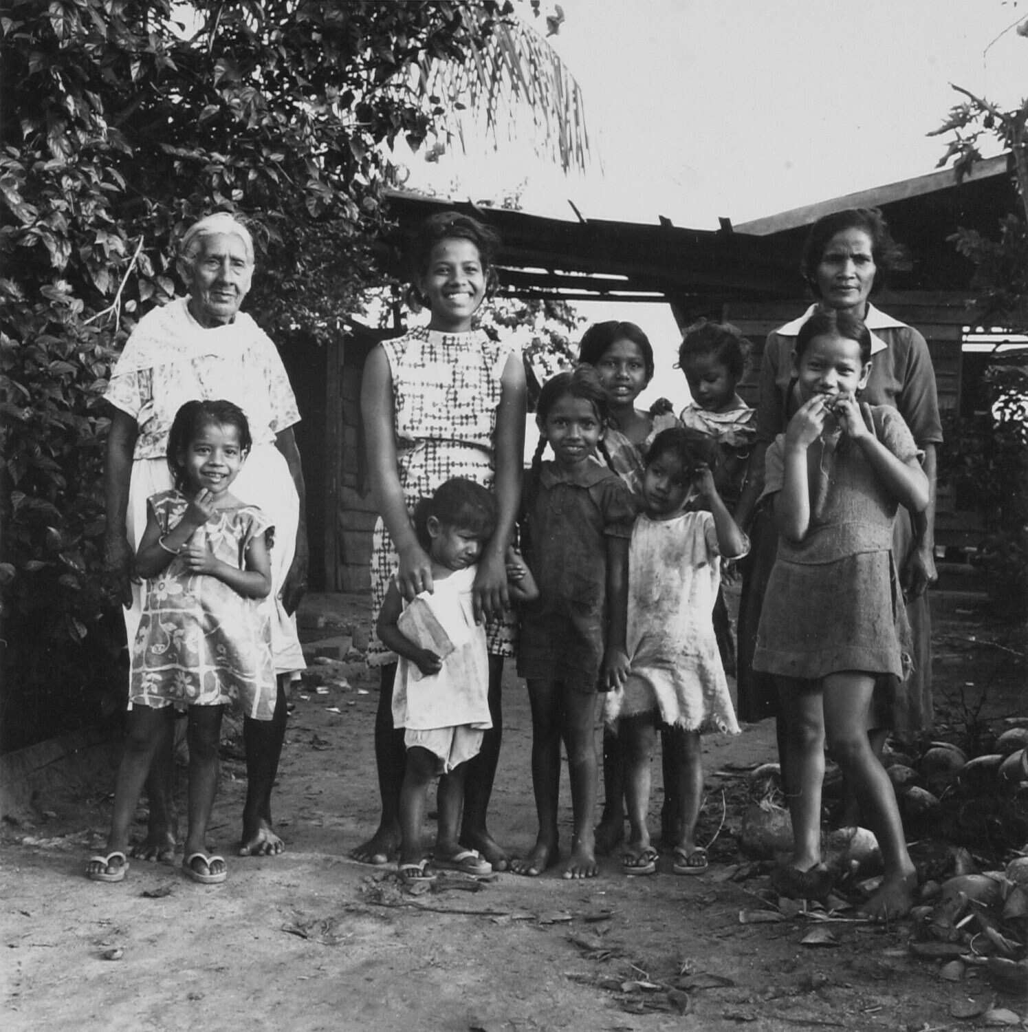 Hindoestaanse kinderen aan Leiding 16,op de achtergr...