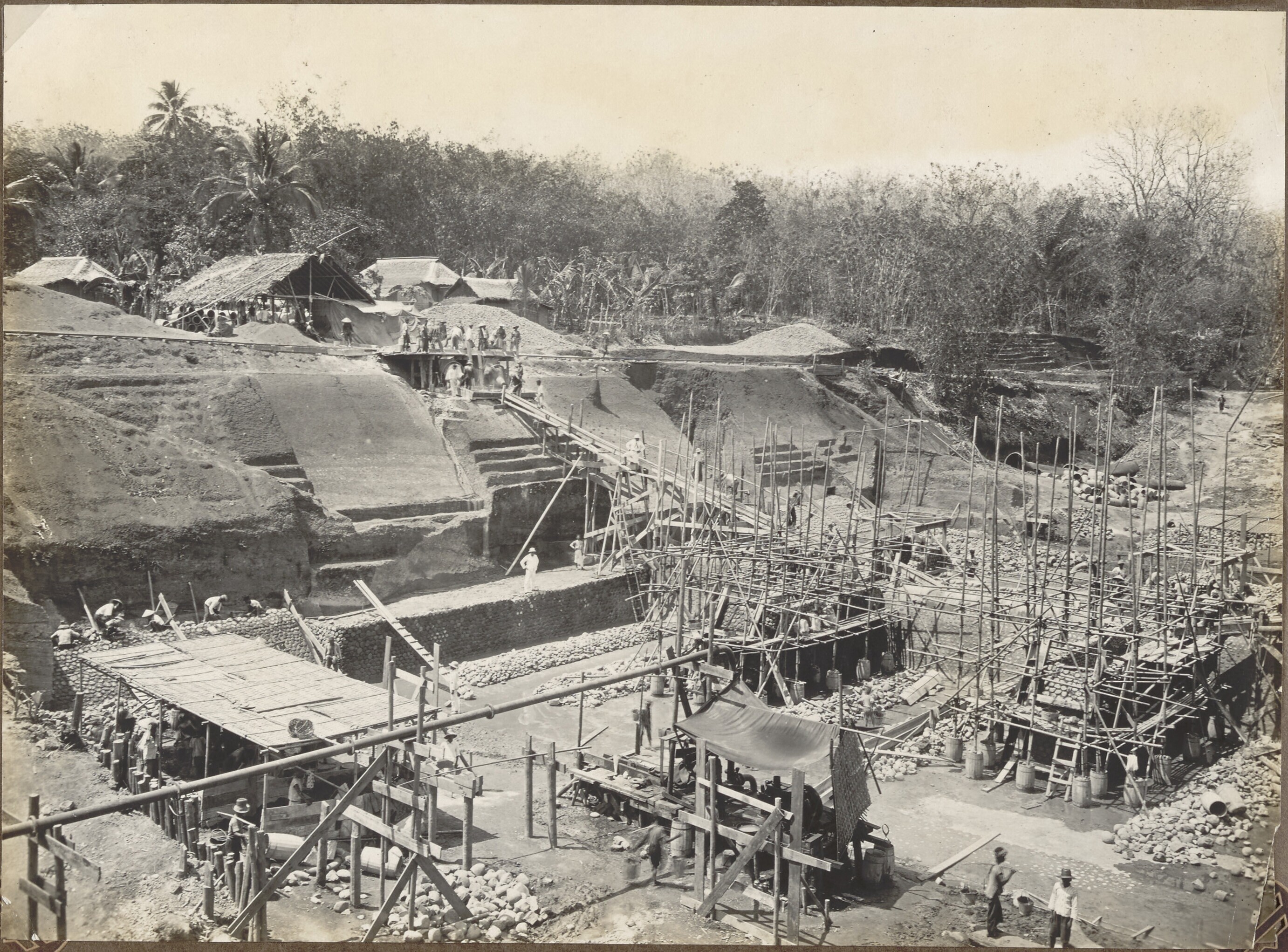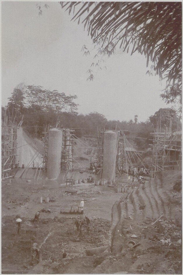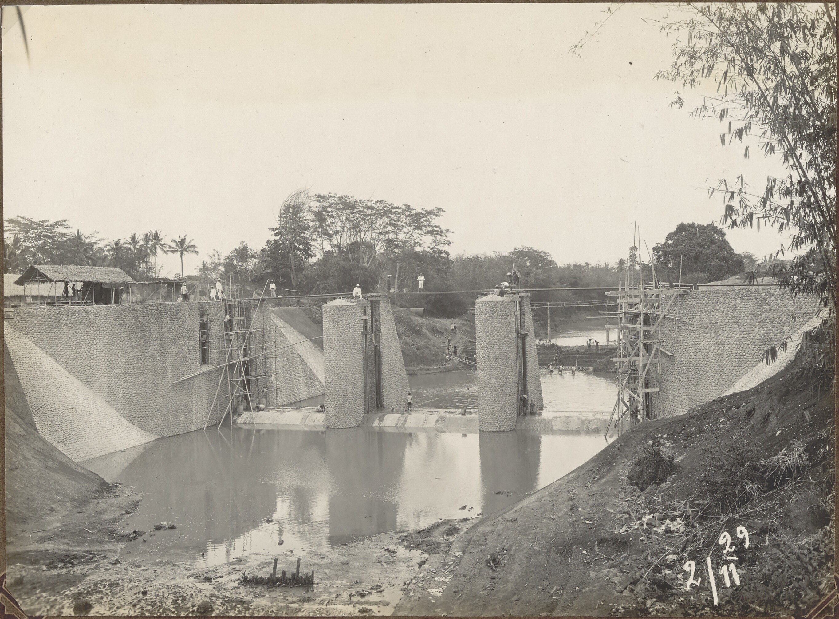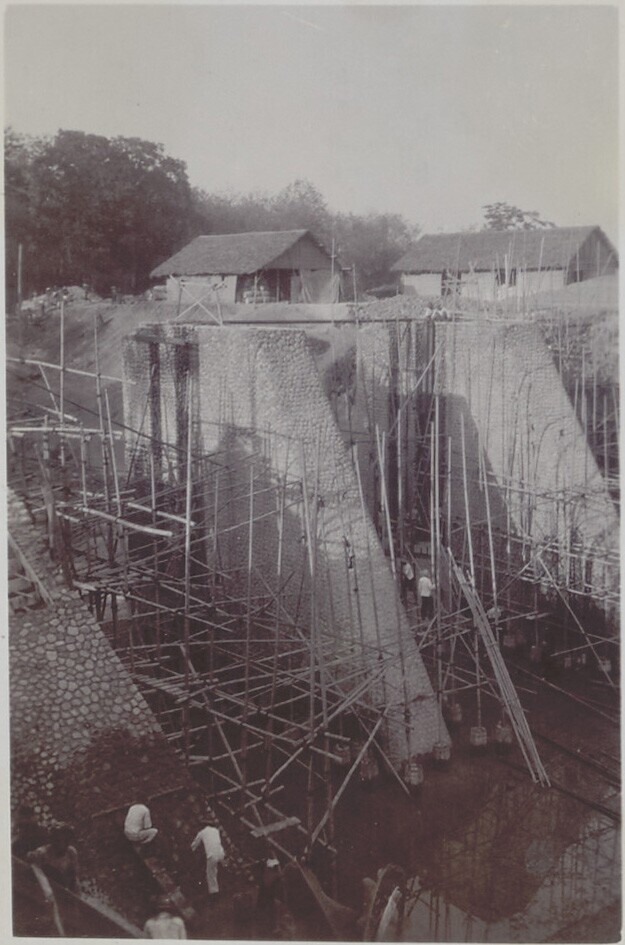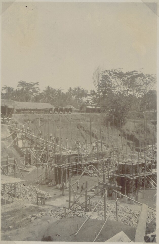 Foto uit een album over bouw van een sluis in Palembang
