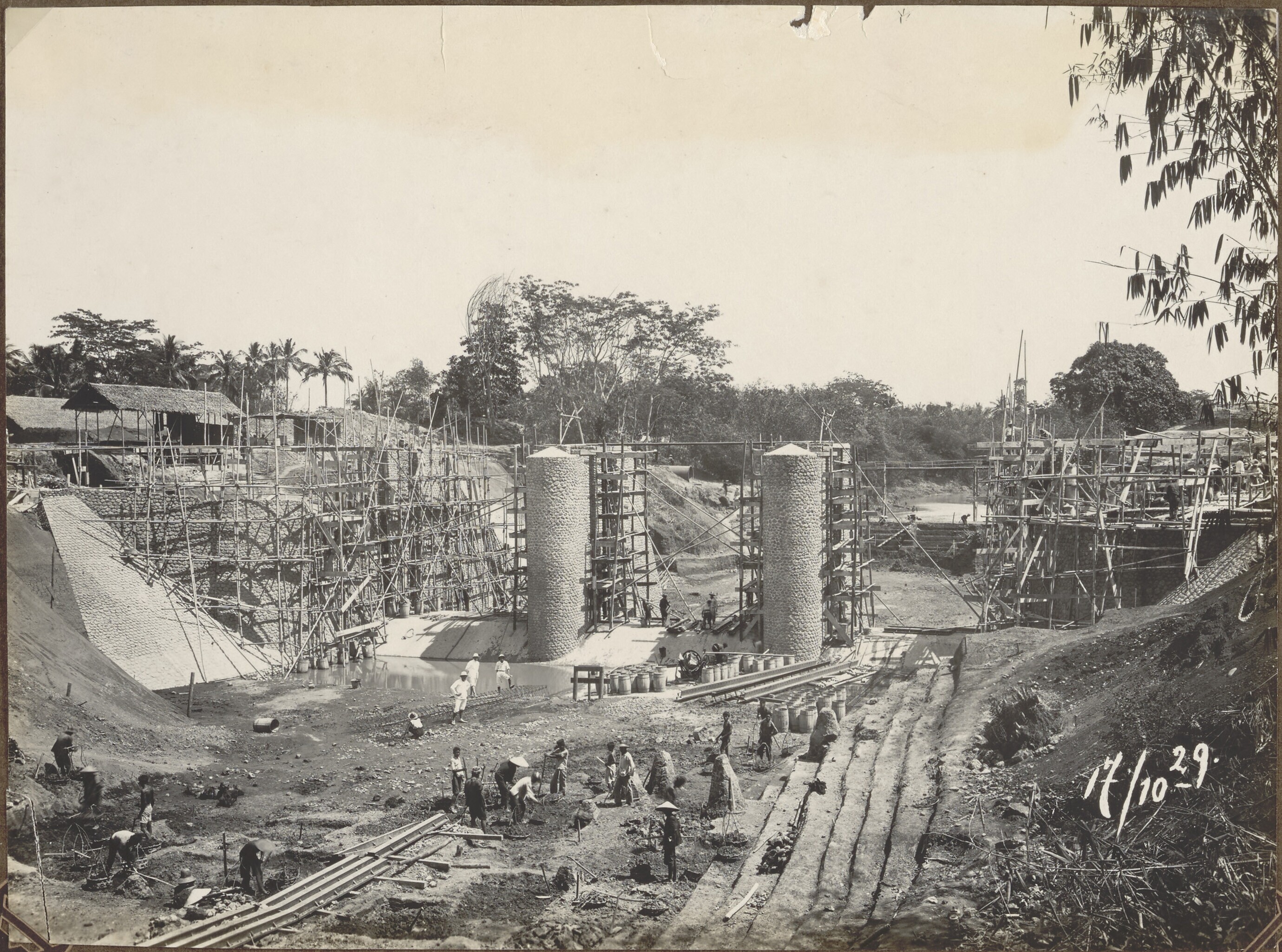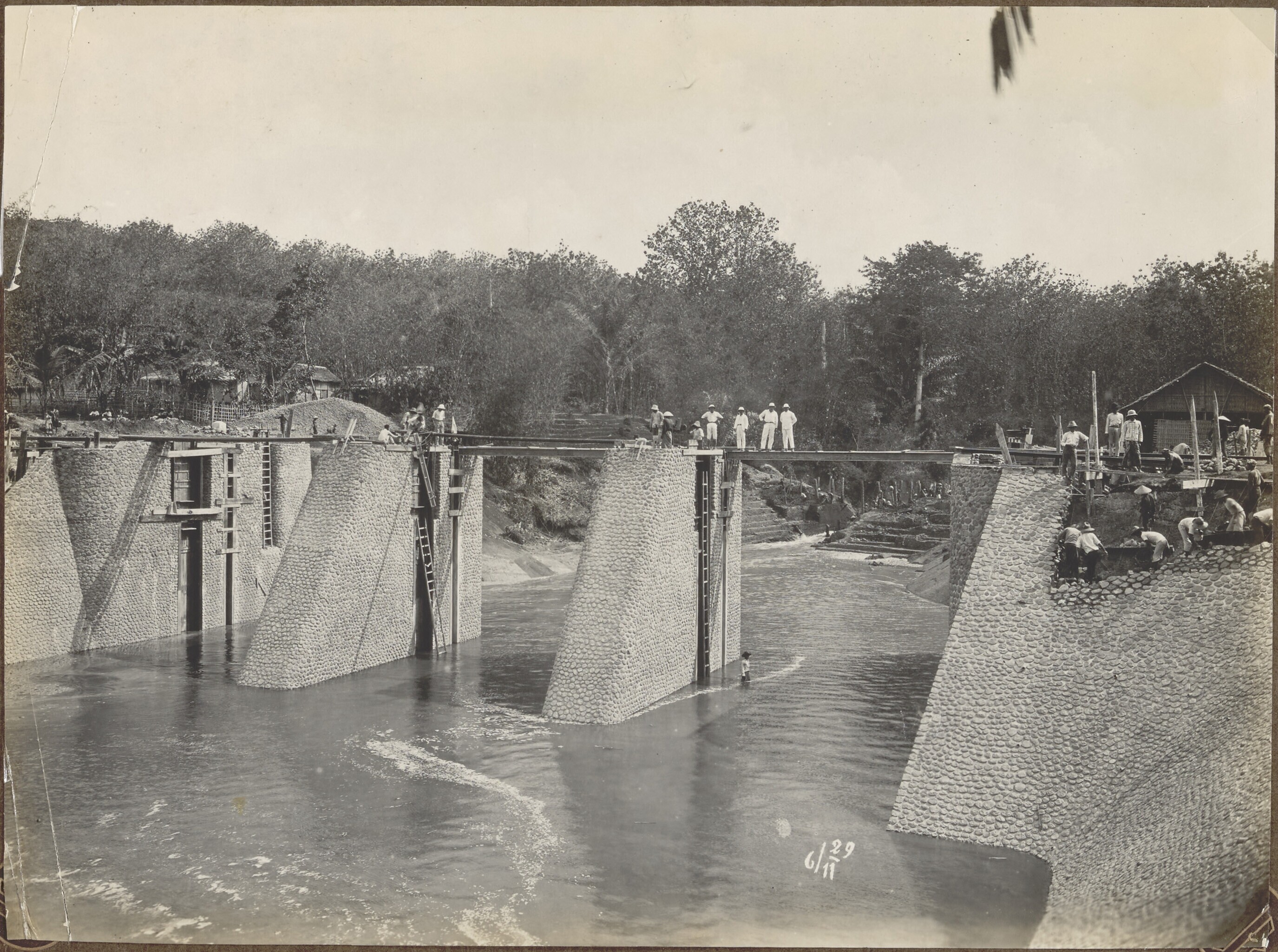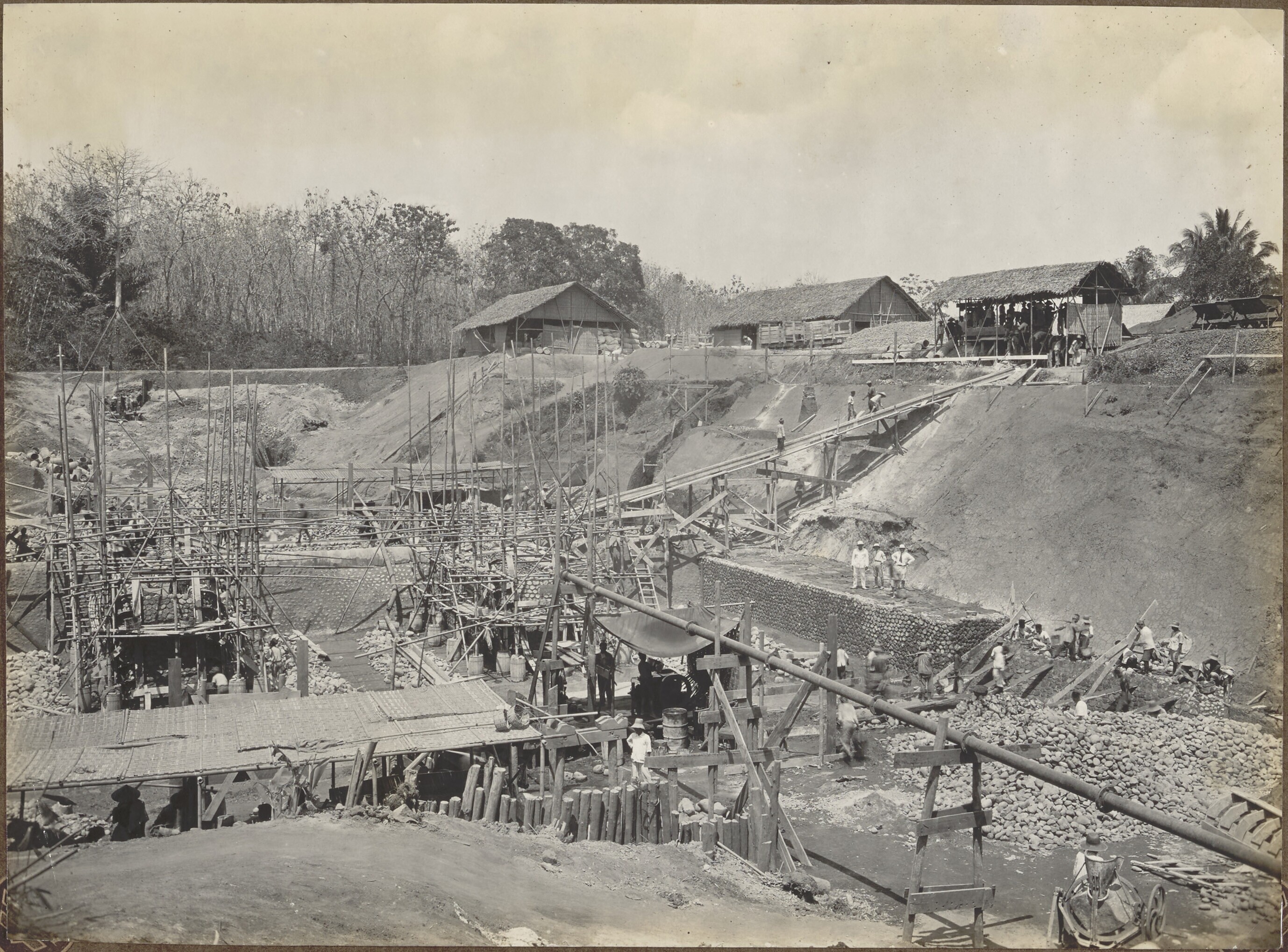 Foto uit een album over bouw van een sluis in Palembang