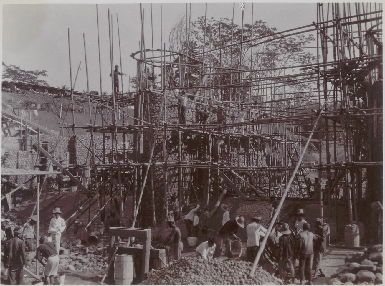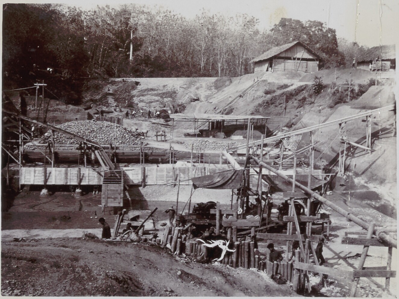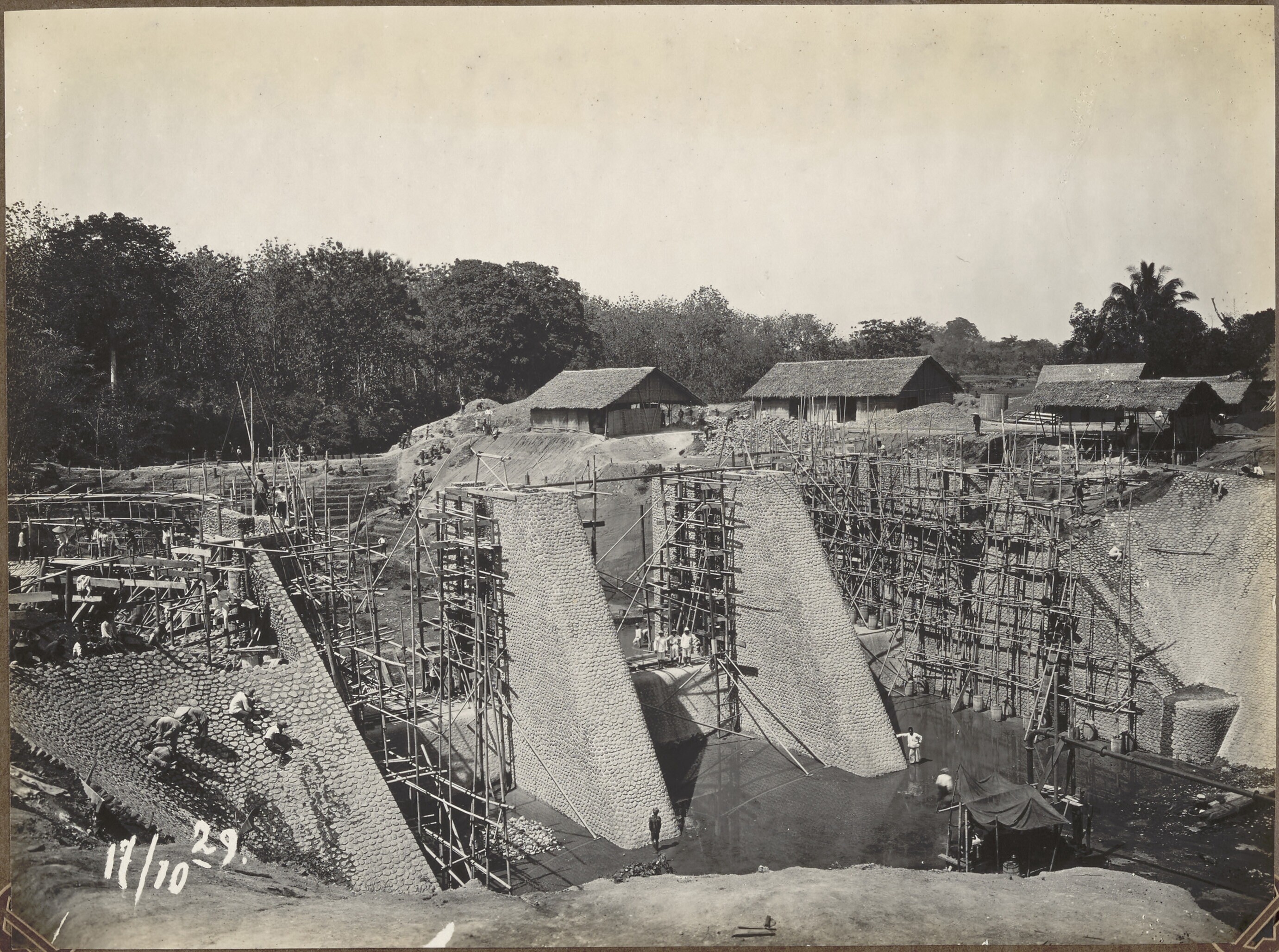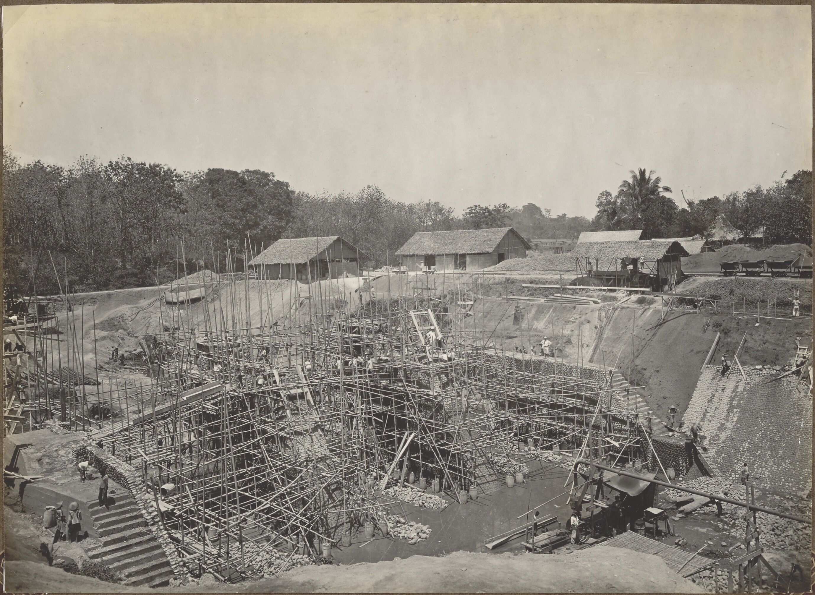 Foto uit een album over bouw van een sluis in Palembang