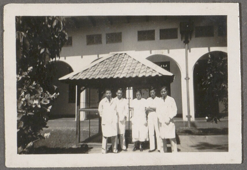 Groepsportret van het personeel op de voorgalerij