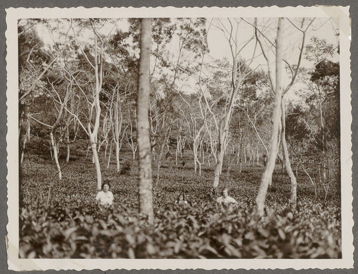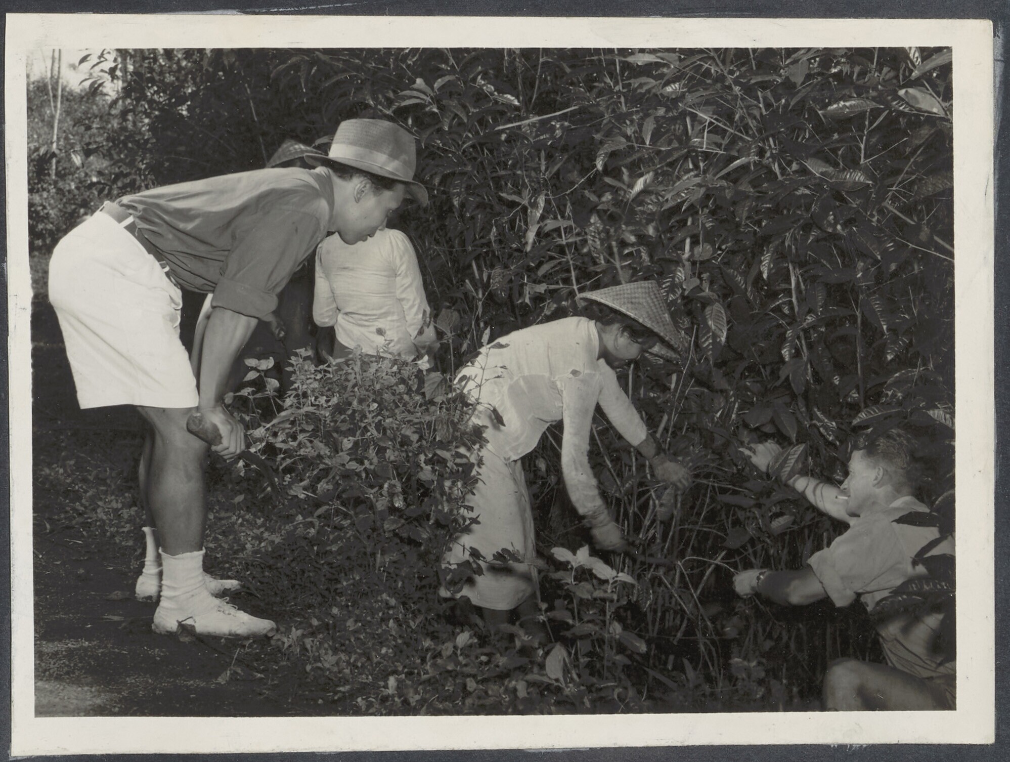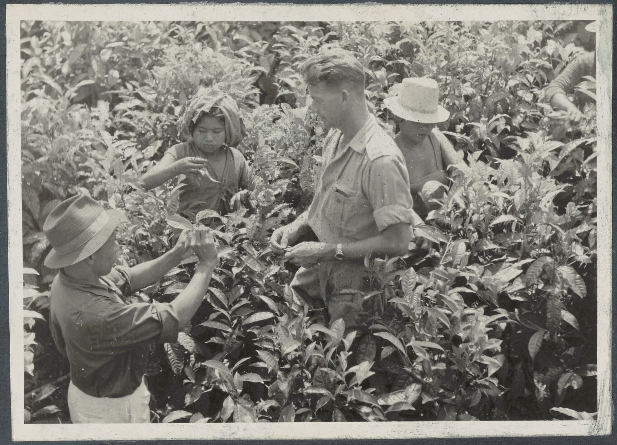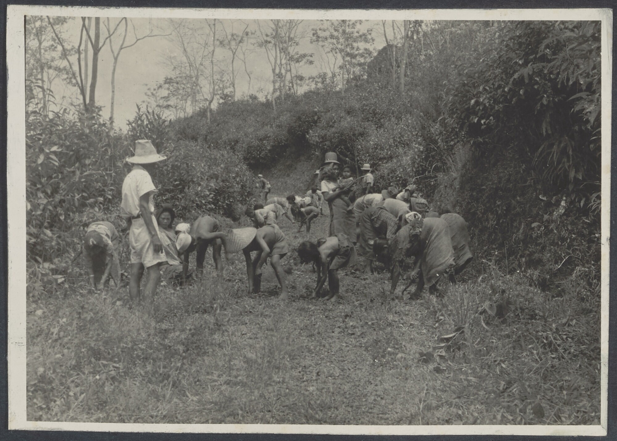 Vrouwen en kinderen zoeken theebladeren uit