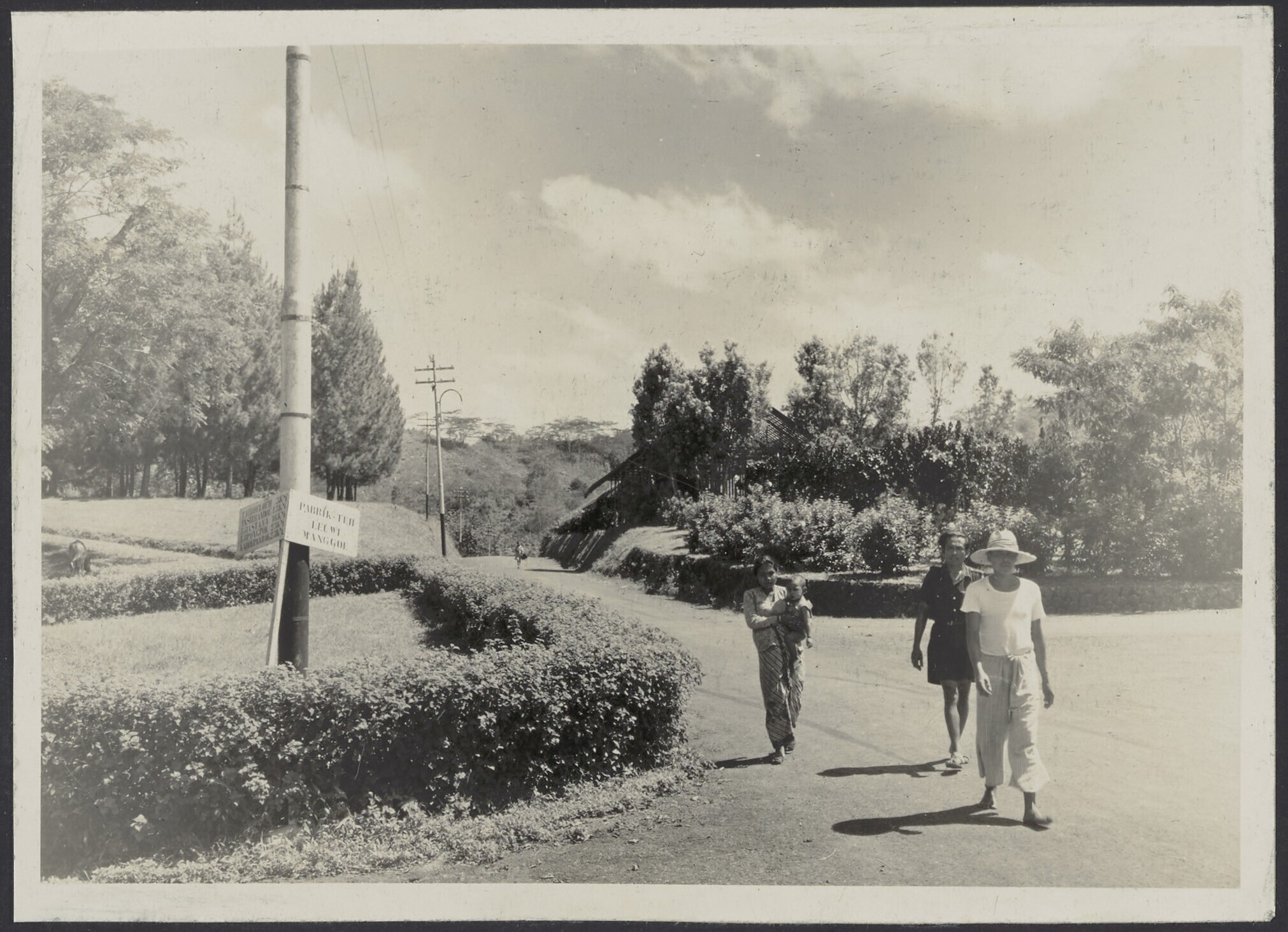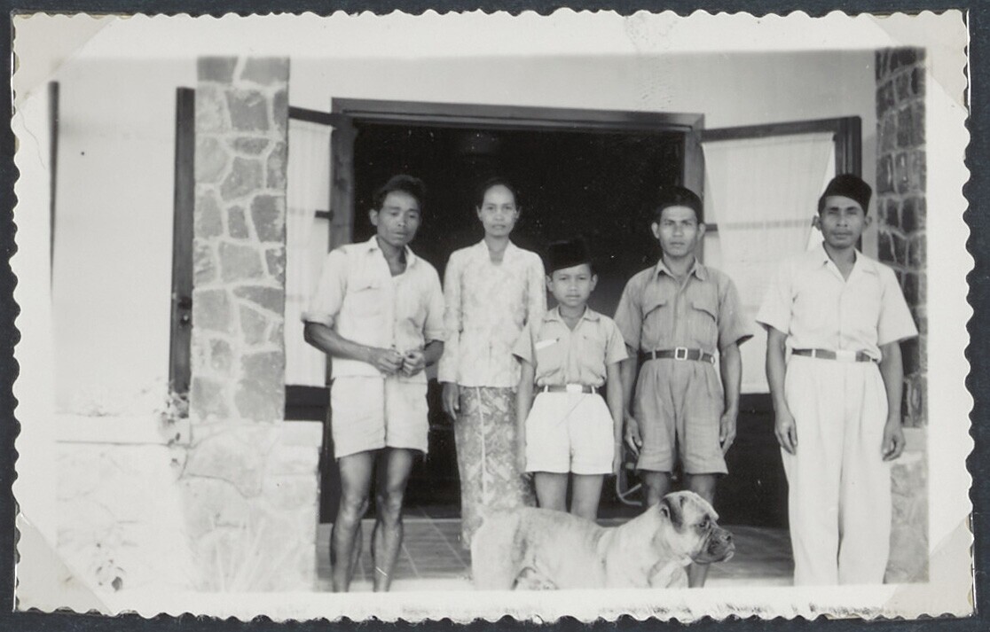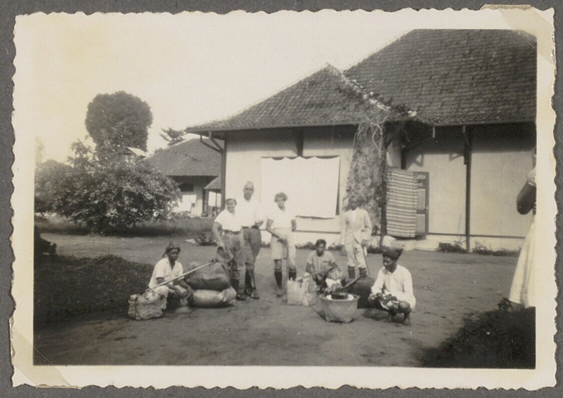 Europese familie en Javaans huispersoneel in de tuin