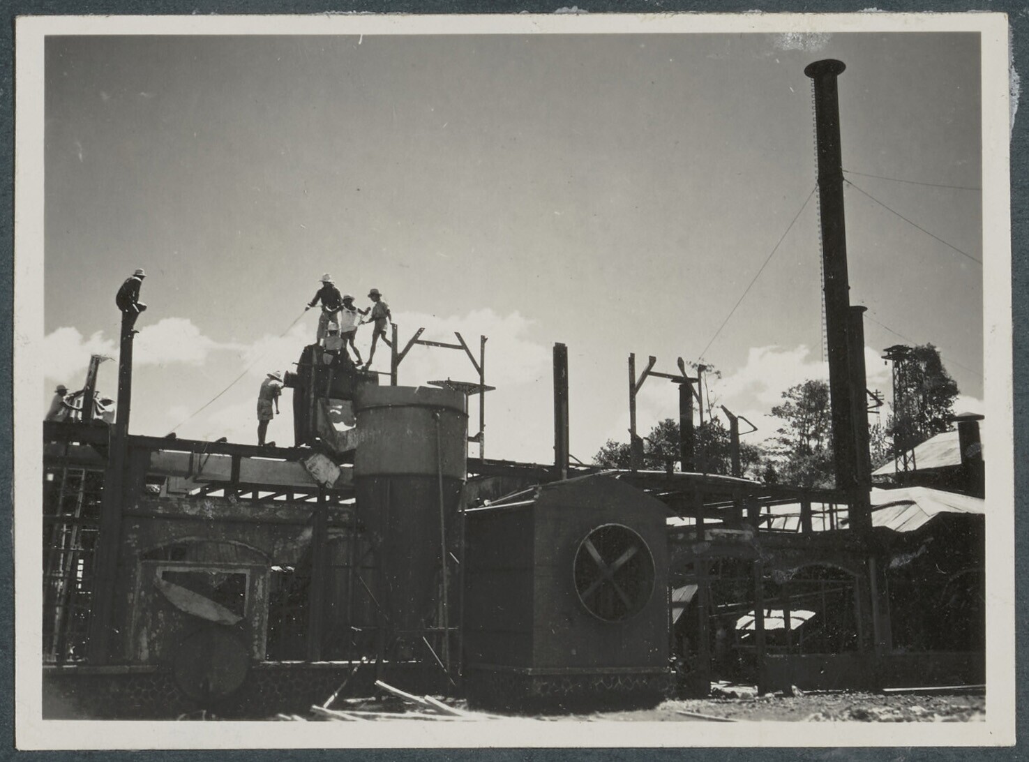 Arbeiders werken aan de werderopbouw van een fabriek