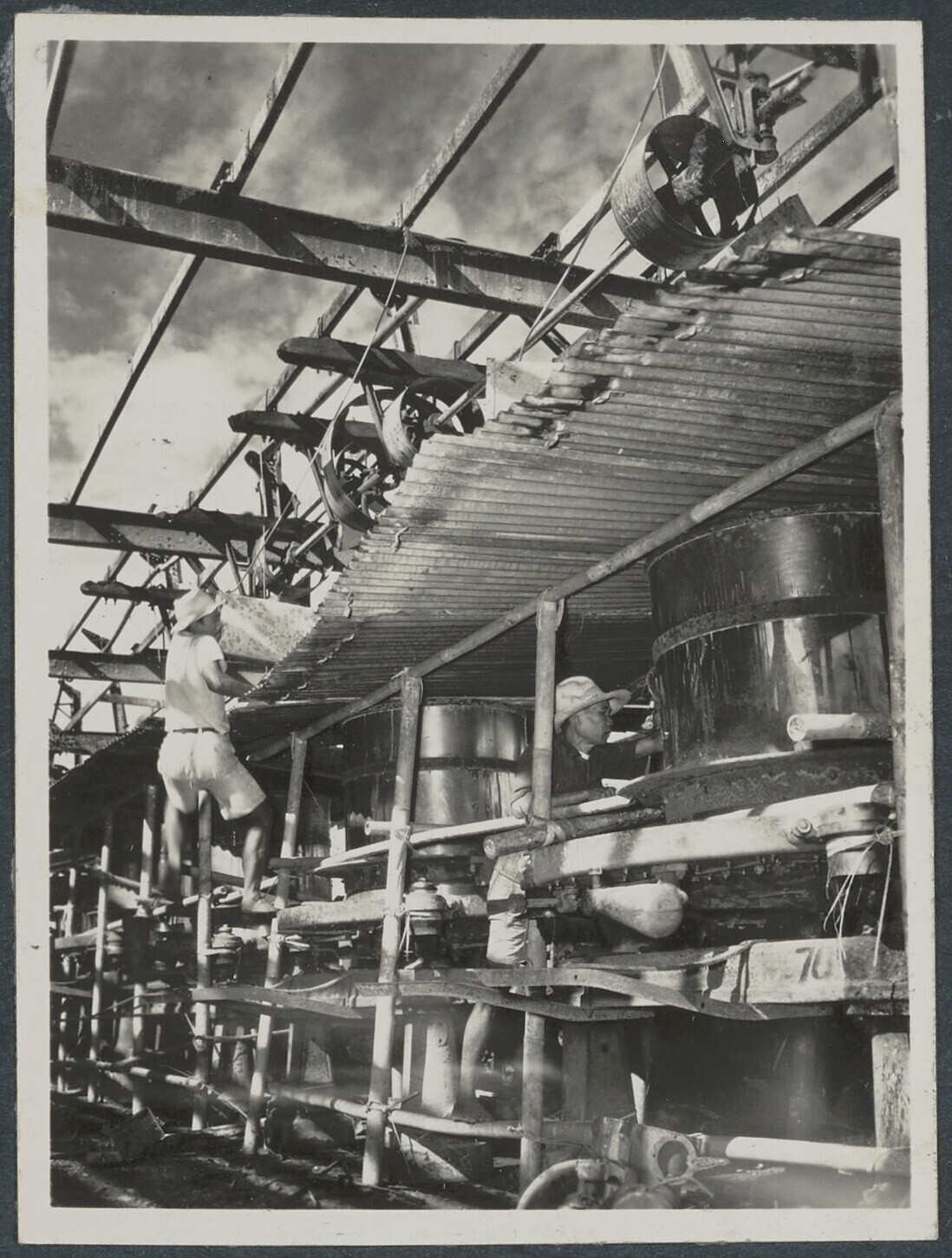 Arbeiders smeren de machines in