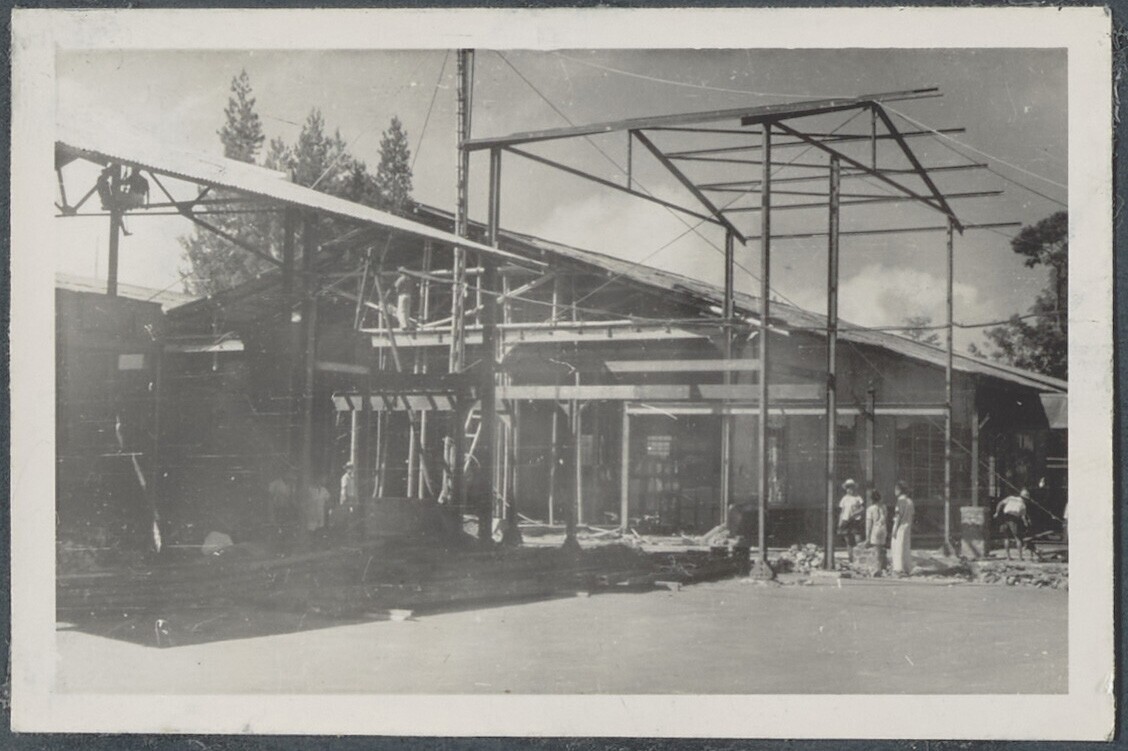 Arbeiders bouwen de kantine