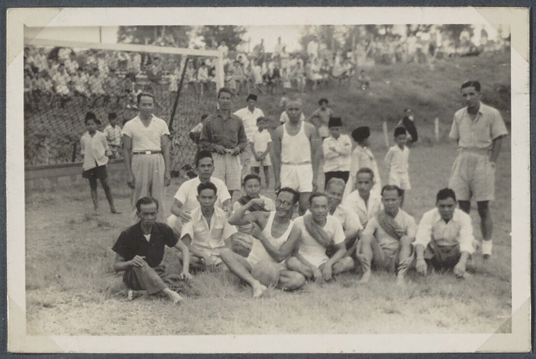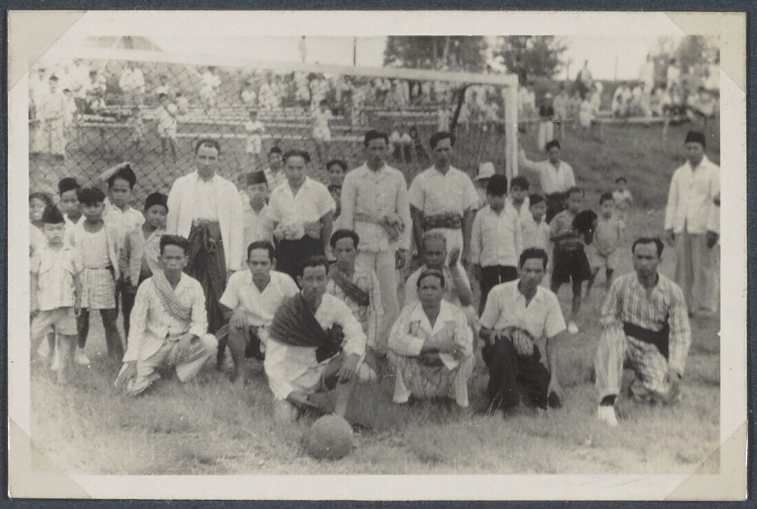 Groepsportret van een voetbalelftal op leeftijd omri...