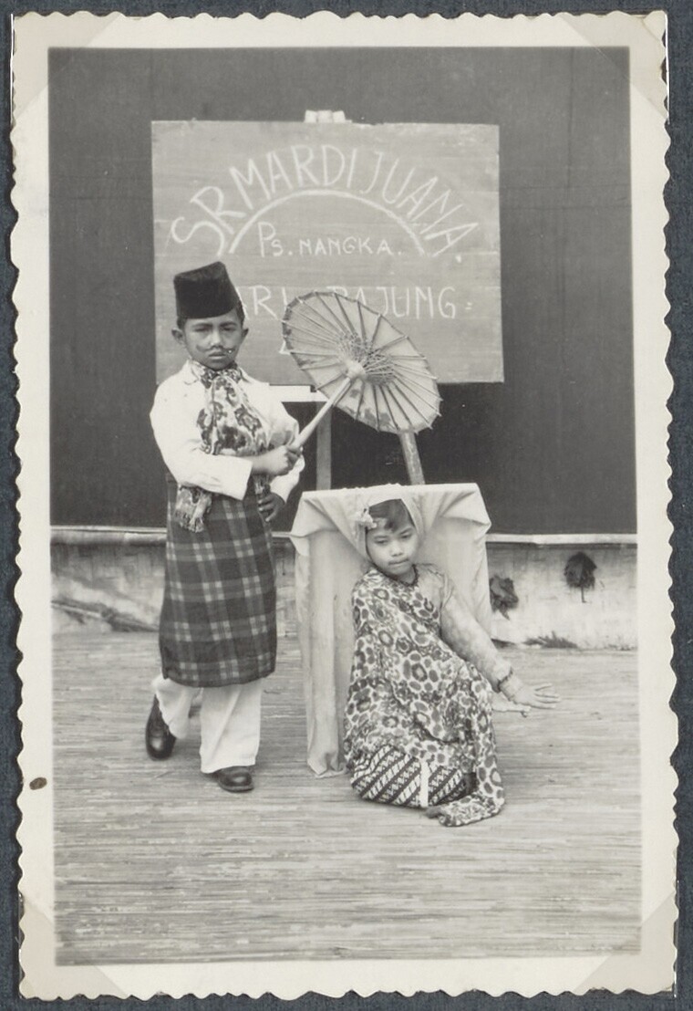 Portret van een meisje in Javaanse kleding tijdens e...