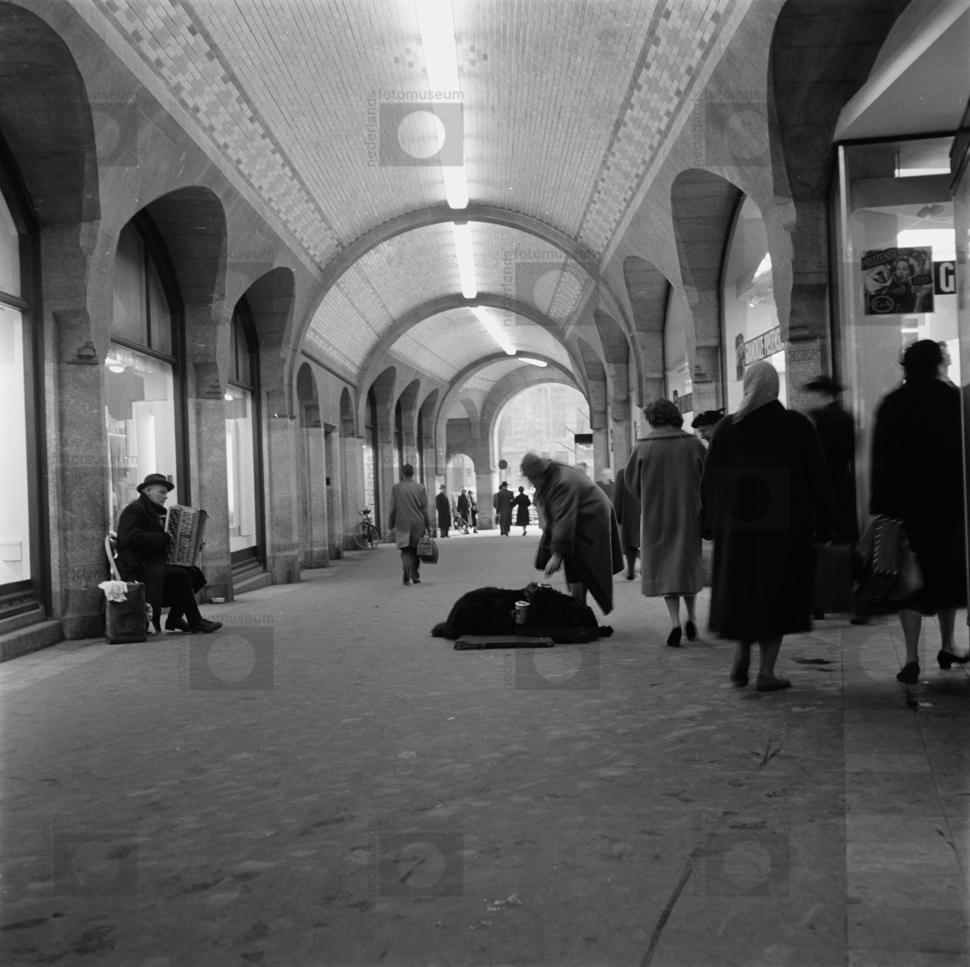 Amsterdam. Nieuwendijk naar Damrak. Straatmuzikant m...