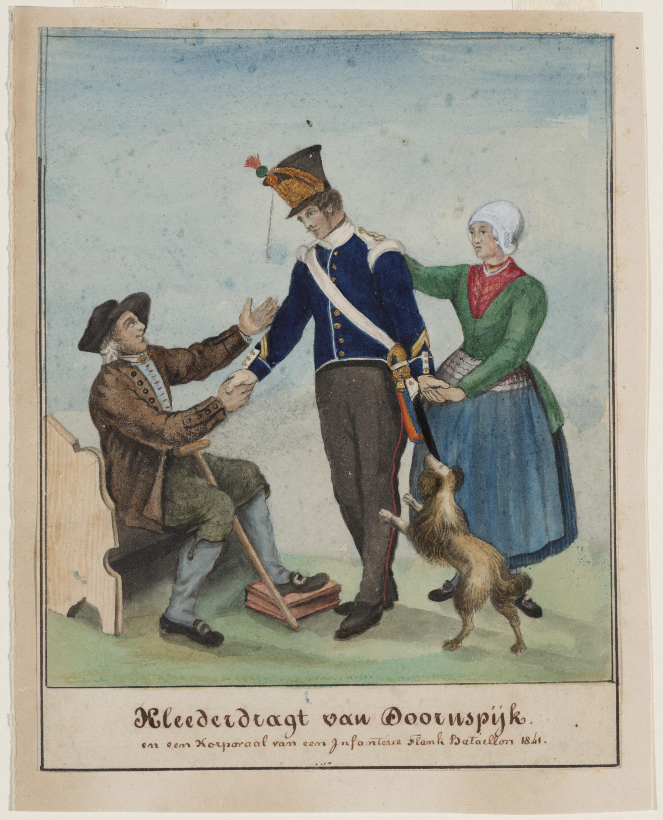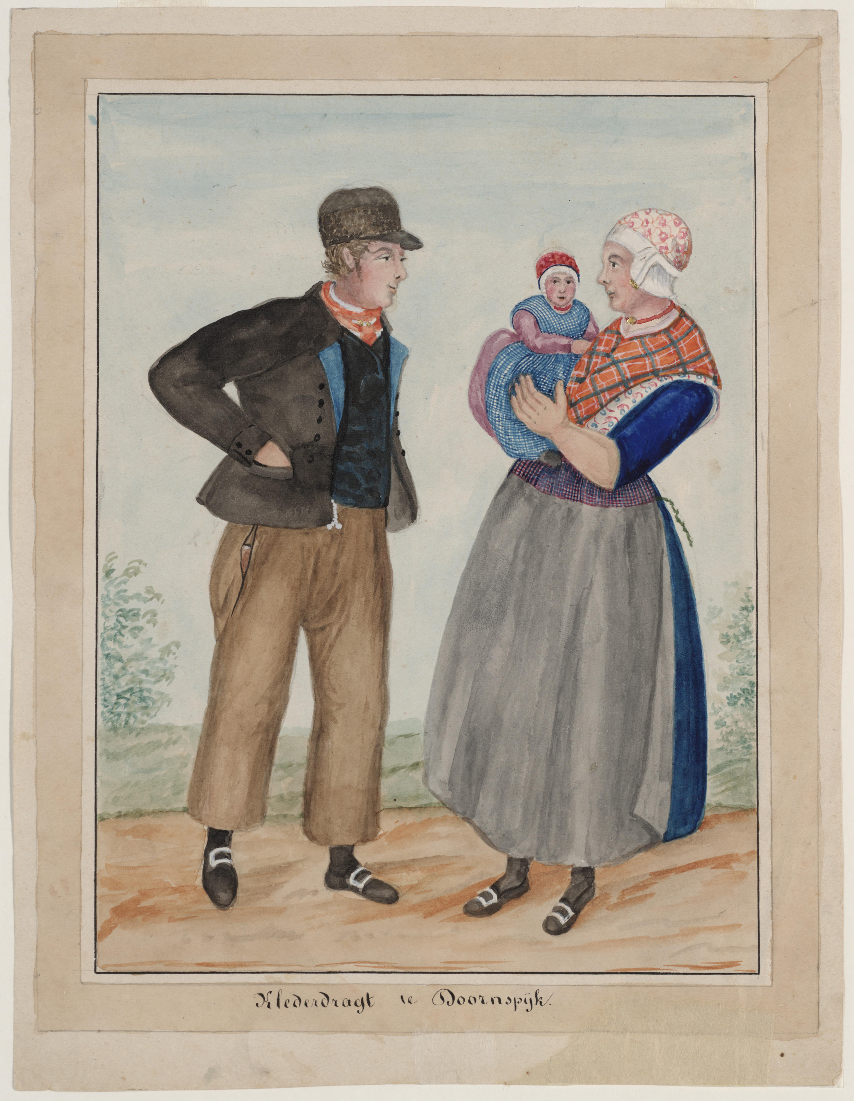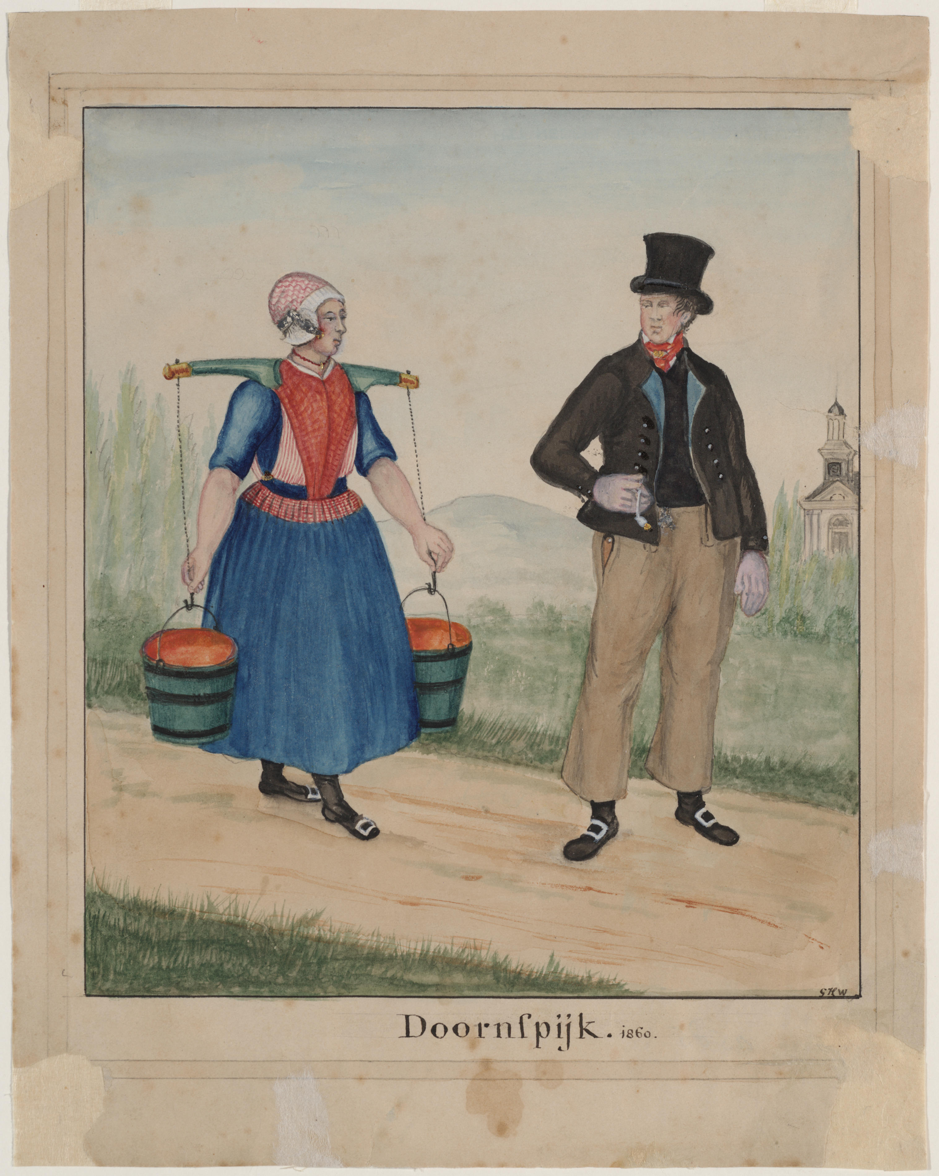 Man en vrouw in de dracht van Doornspijk en een korp...