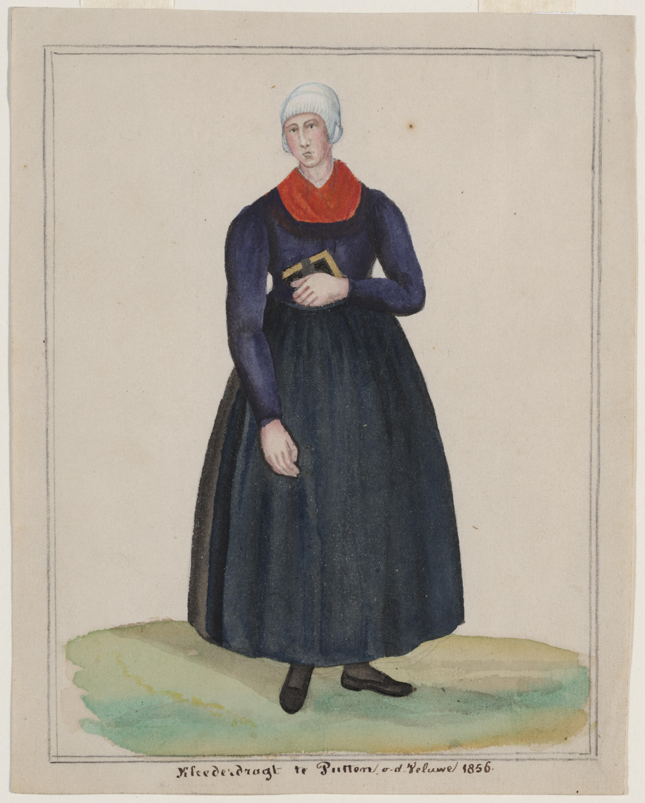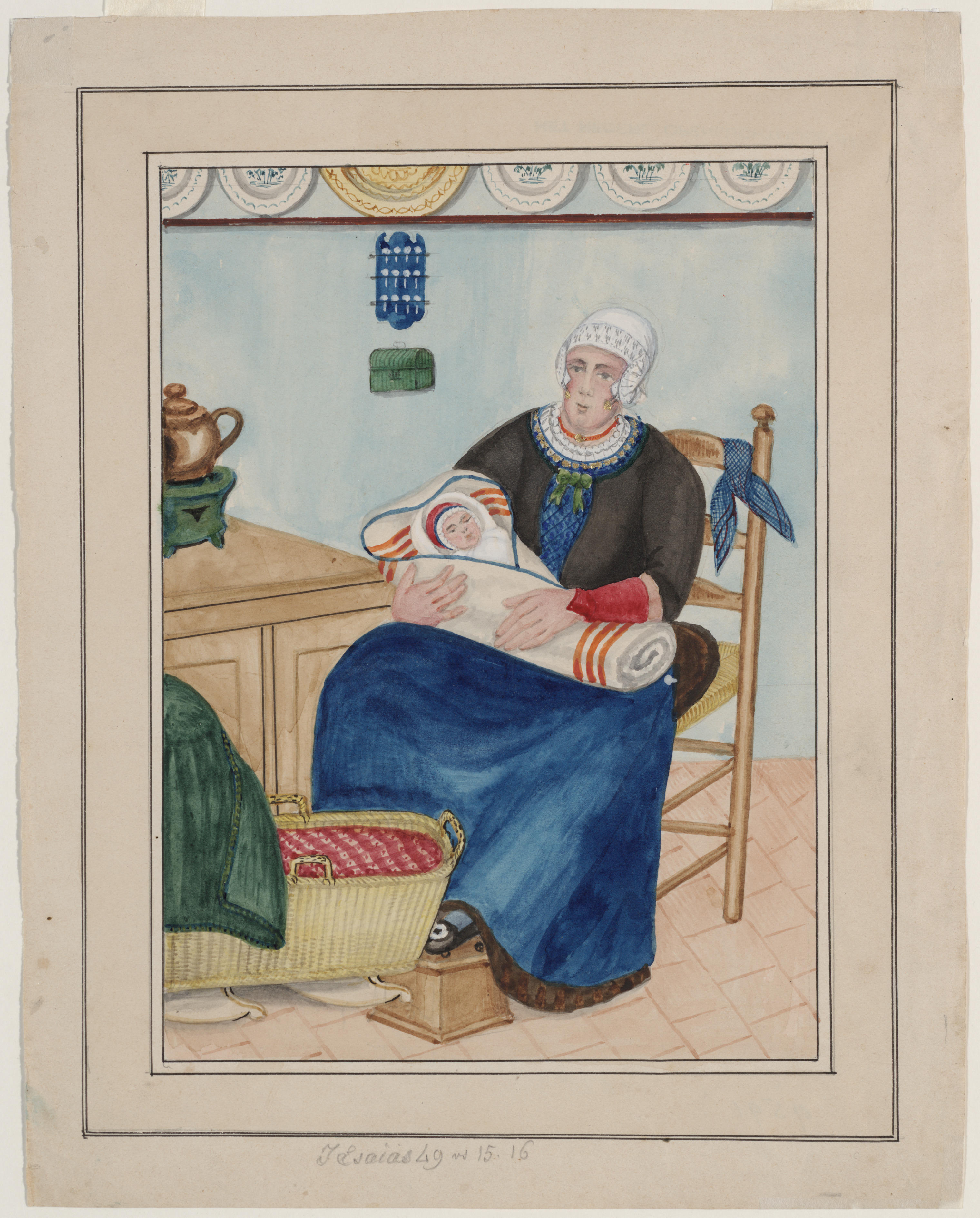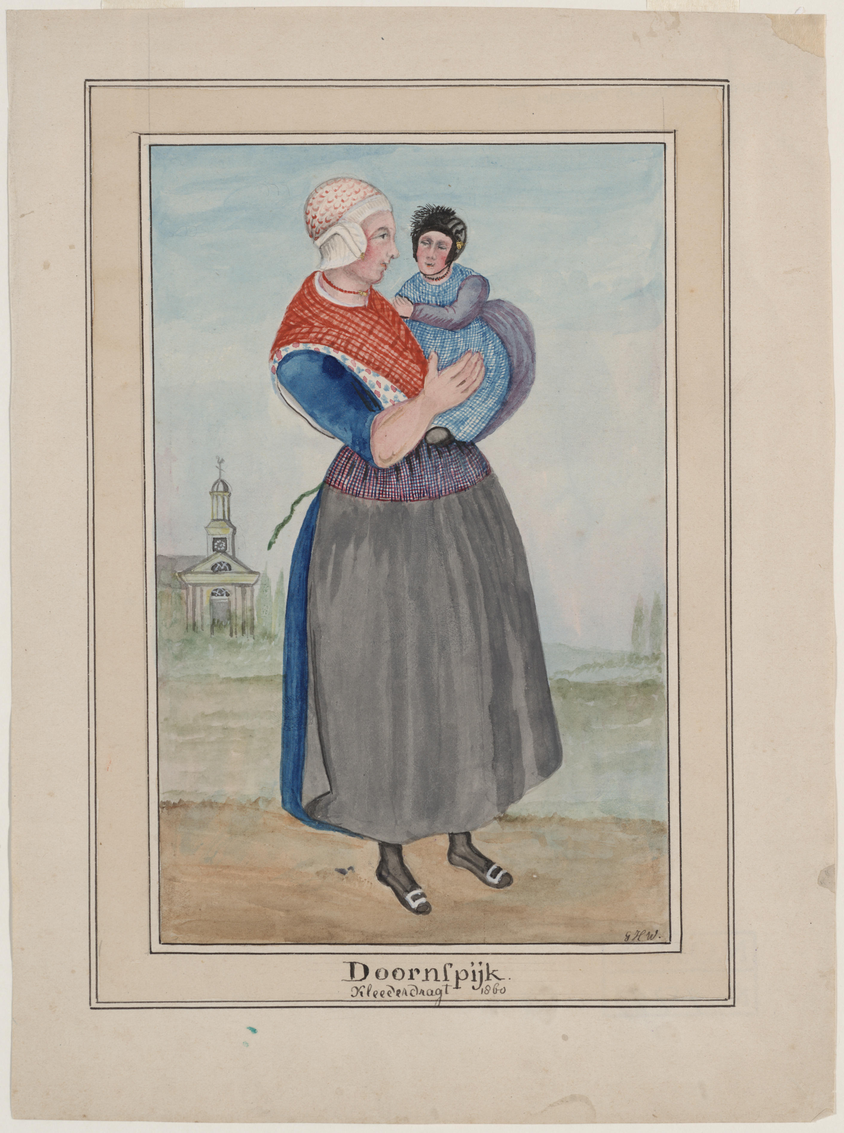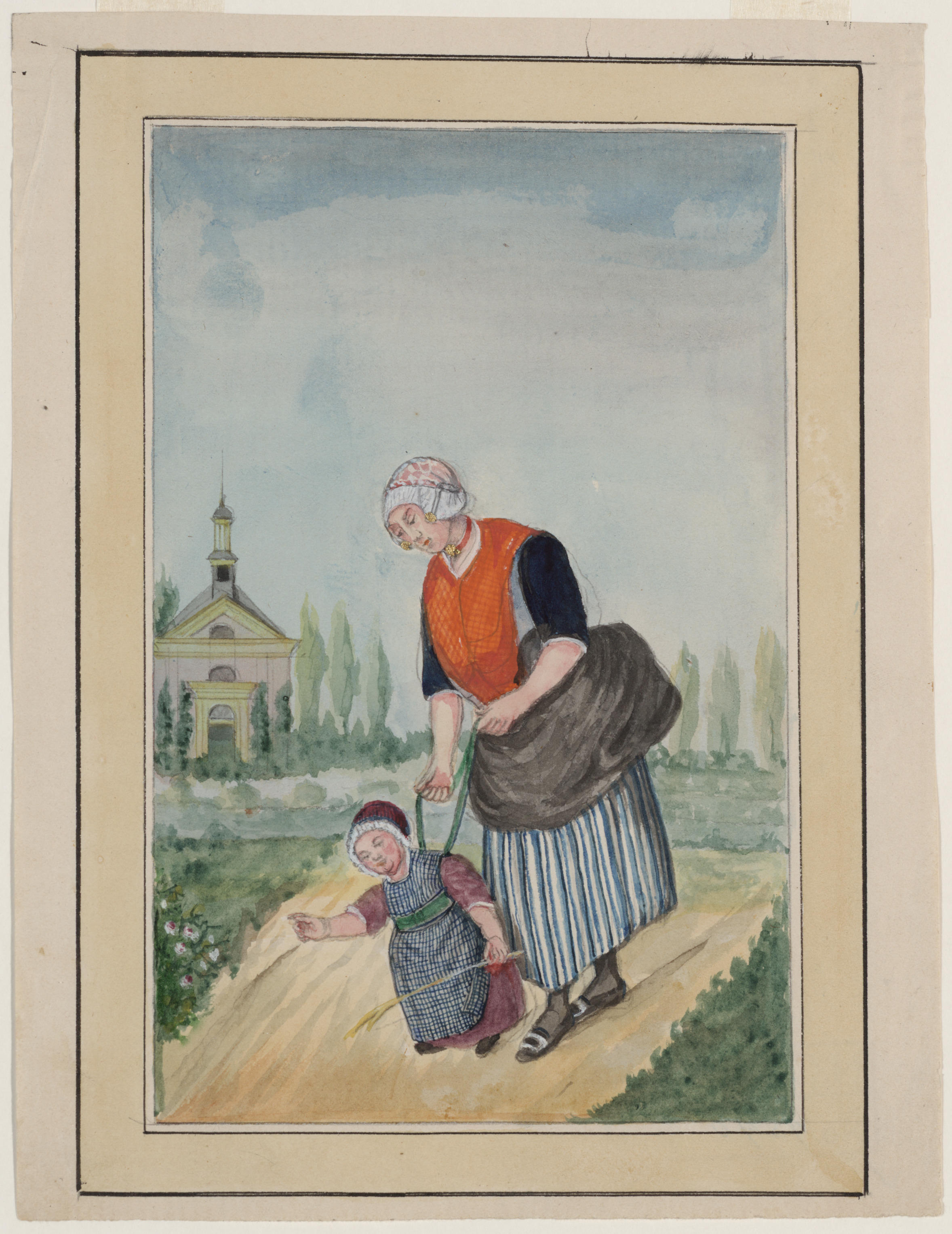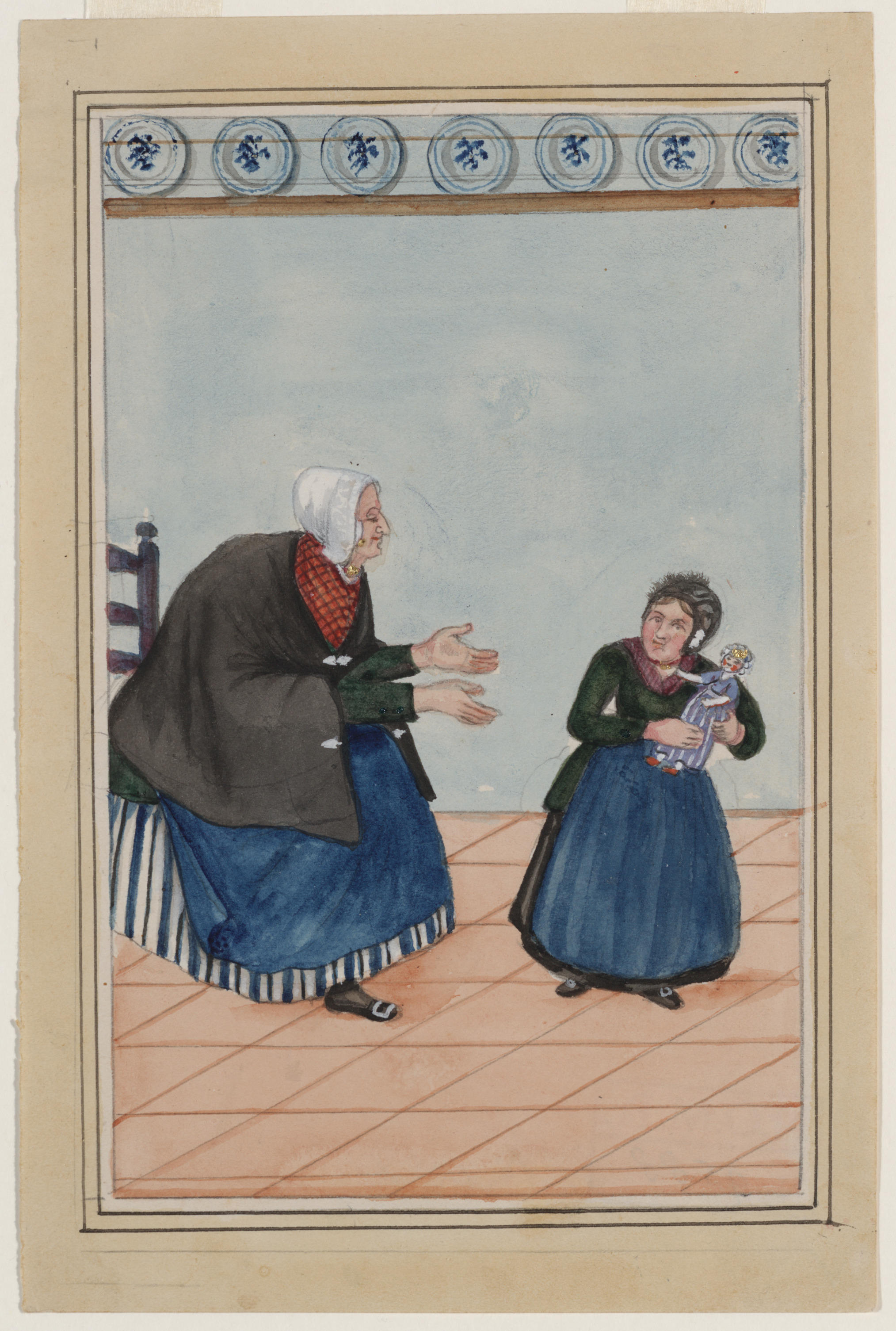 Oude vrouw met meisje in dracht, Noord-Veluwe