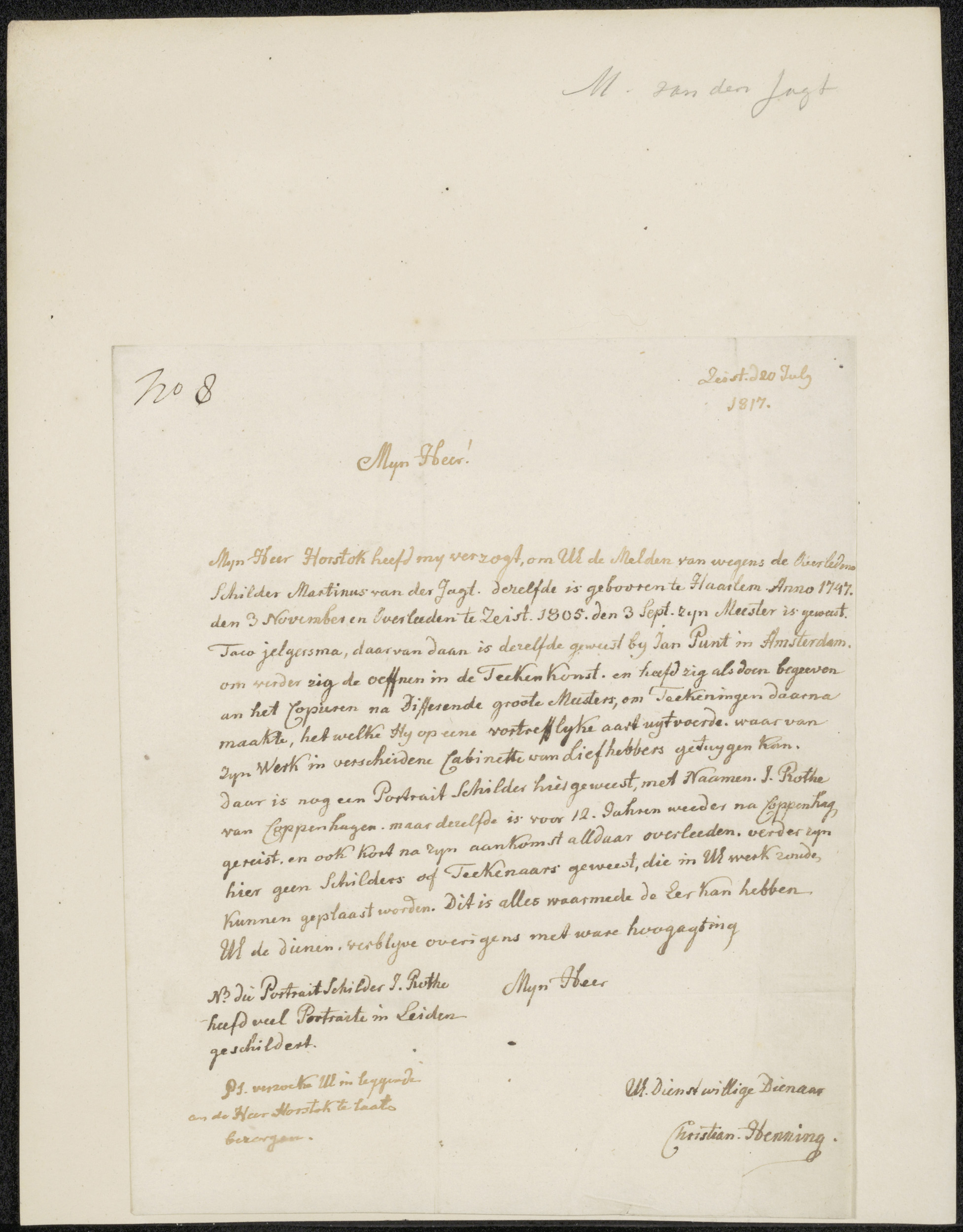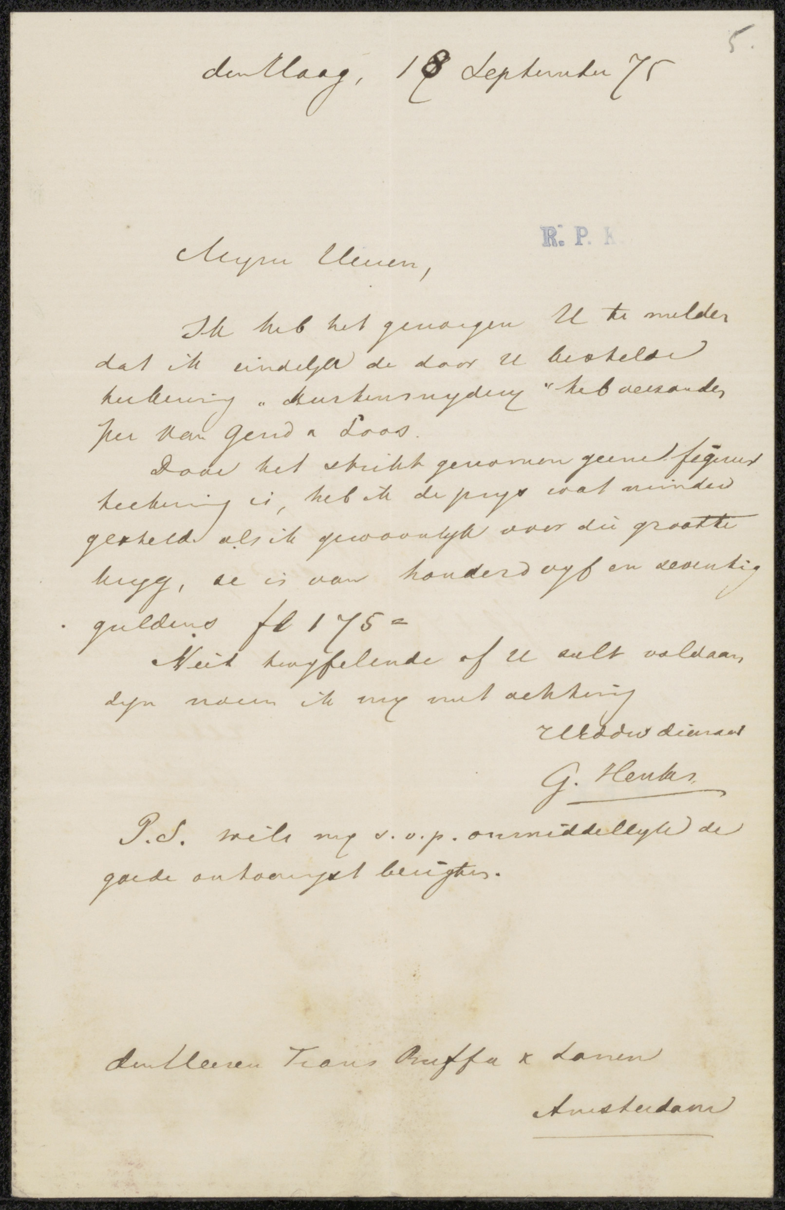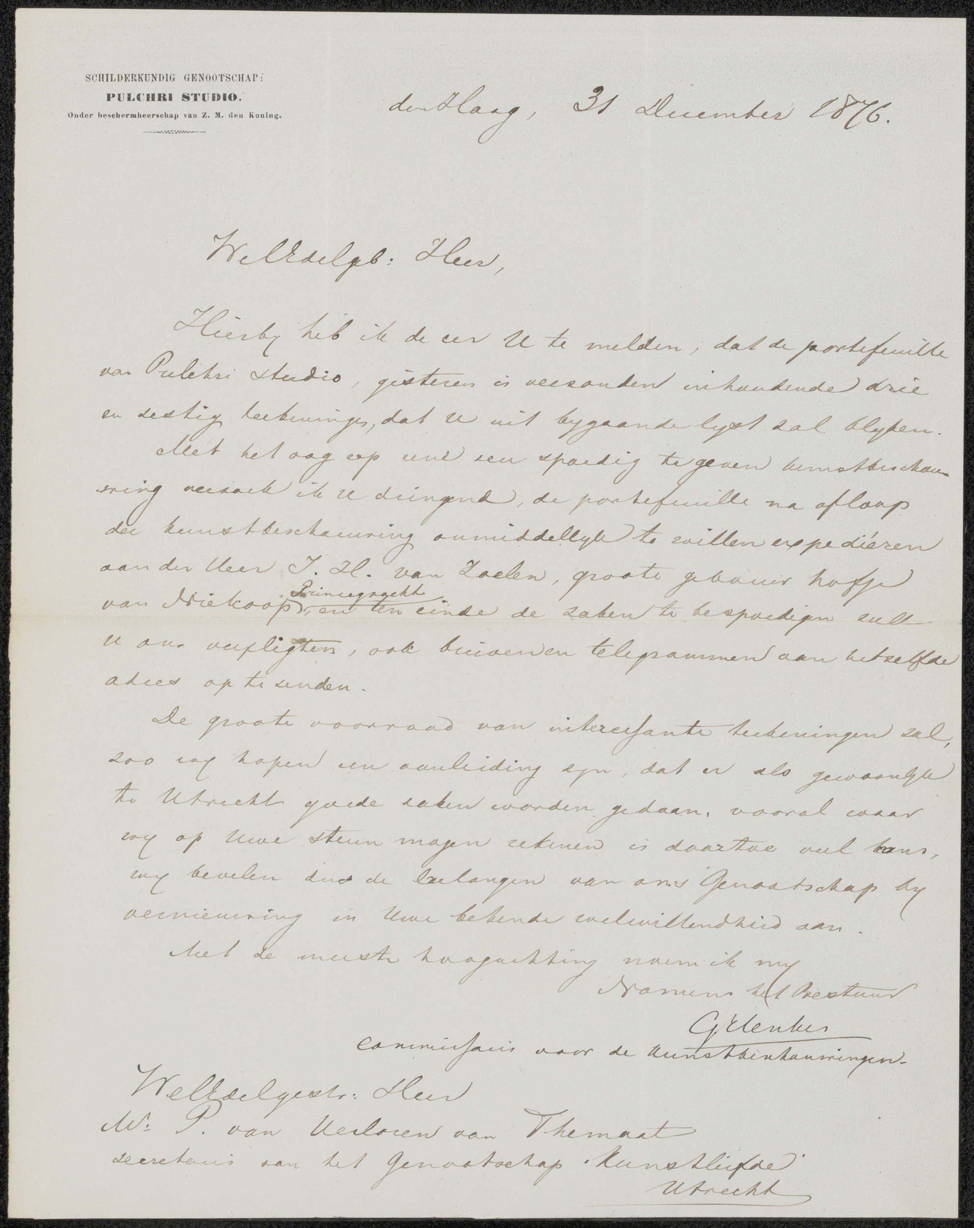 Brief aan Pieter Verloren van Themaat, secretaris va...