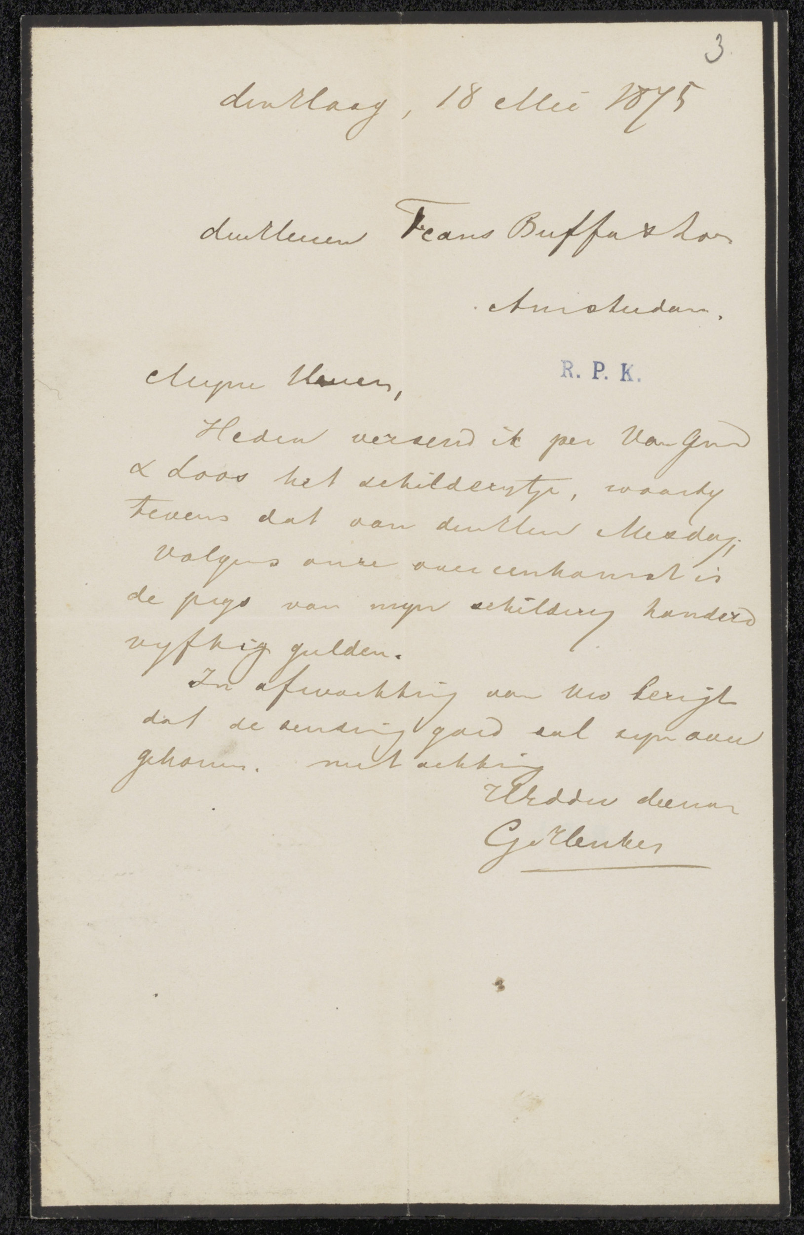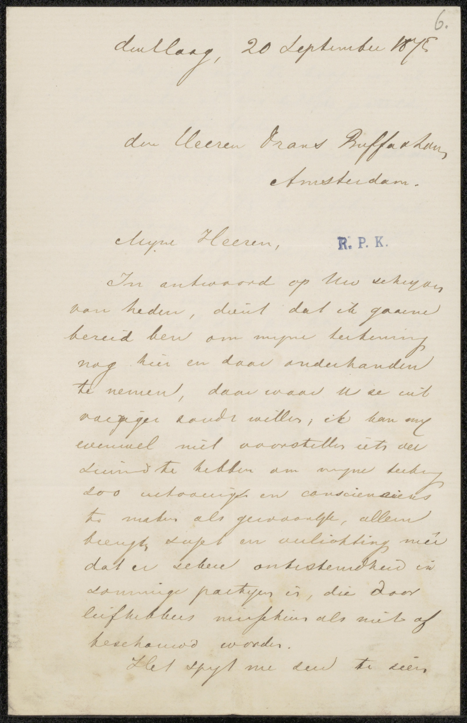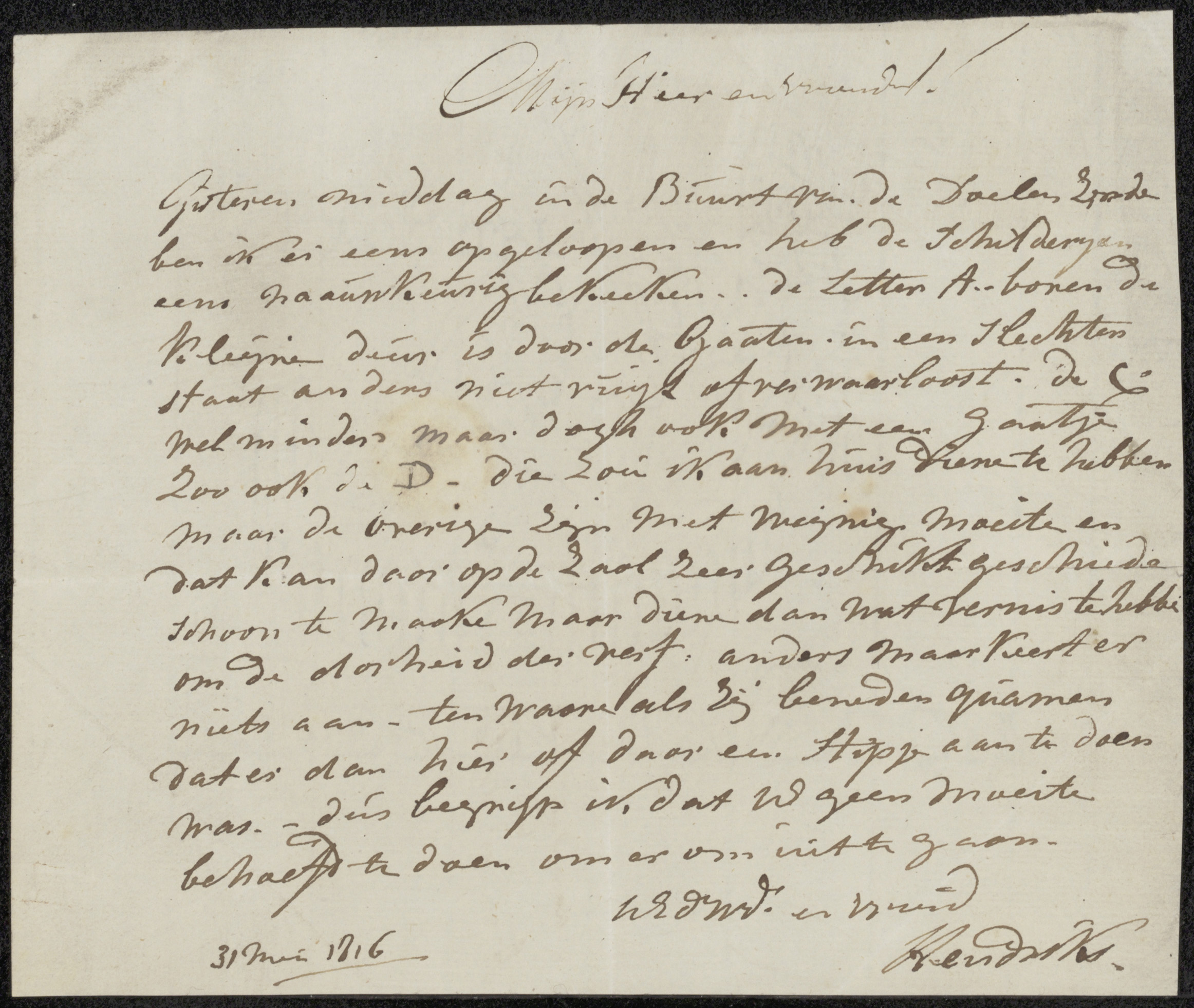 Brief aan Pieter Verloren van Themaat, secretaris va...