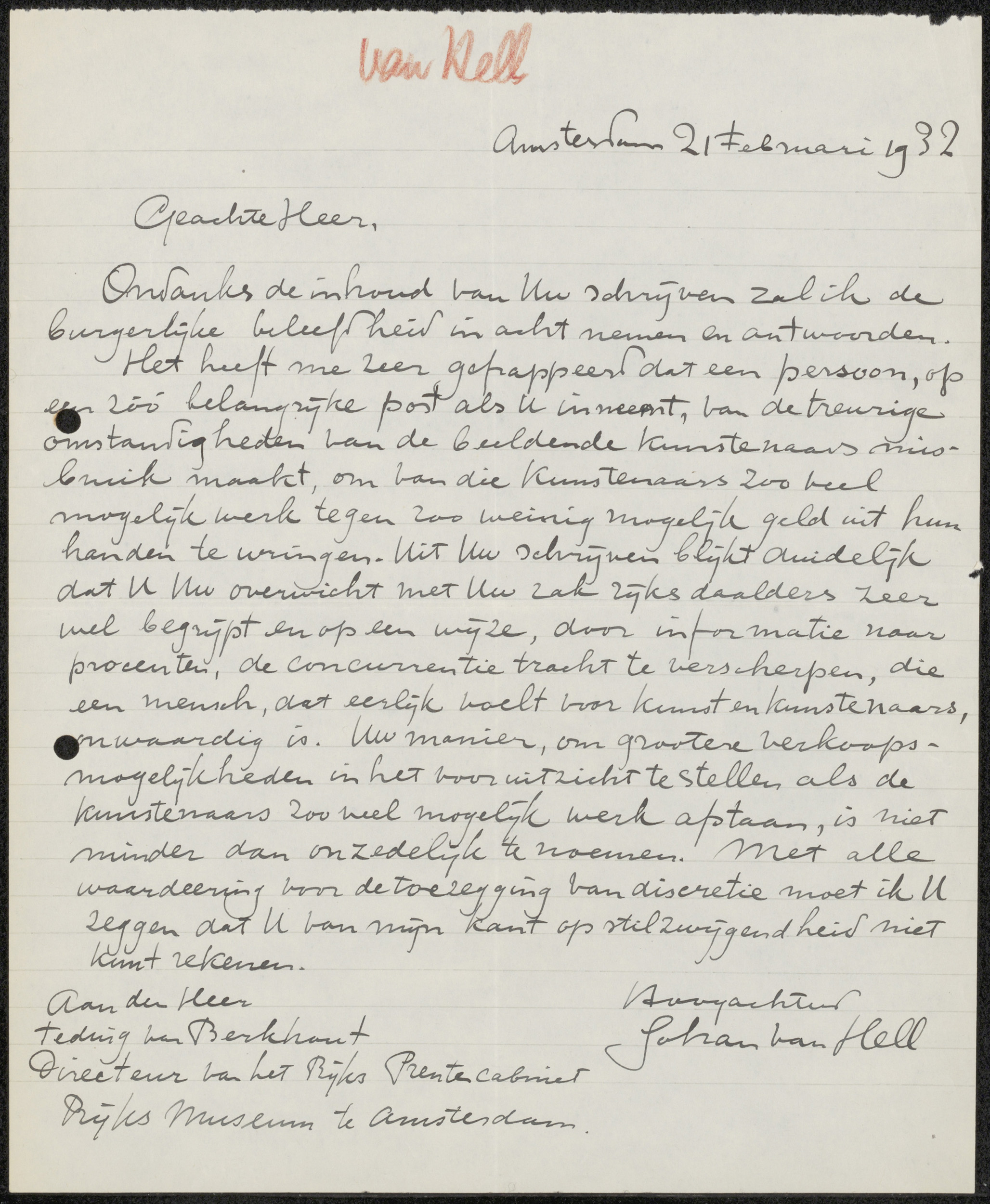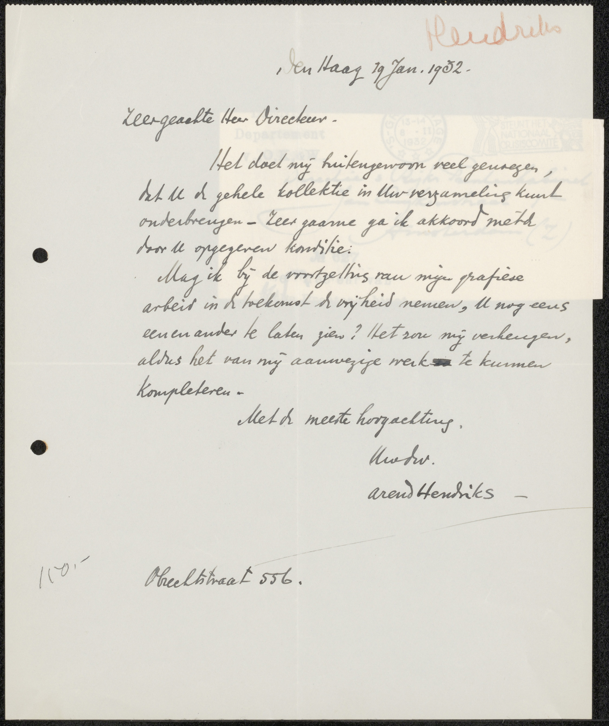Brief aan jonkheer Hendrik Teding van Berkhout (1879...