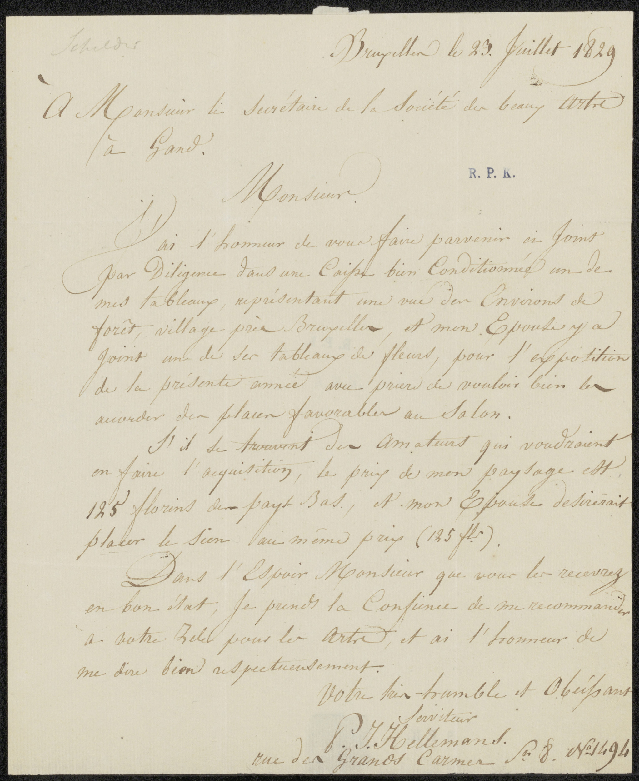 Brief aan Pièrre François Antoine De Goesin, secreta...