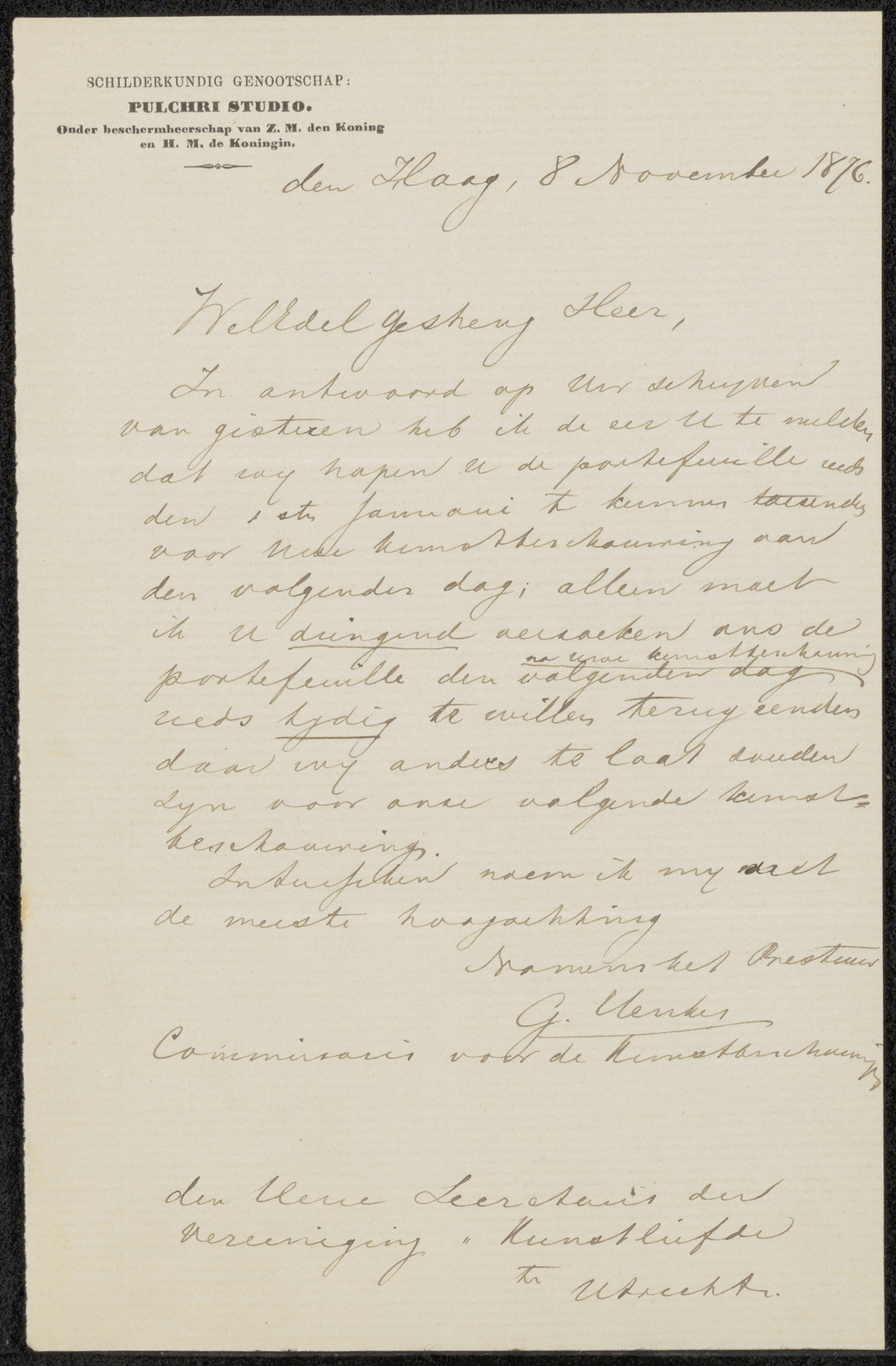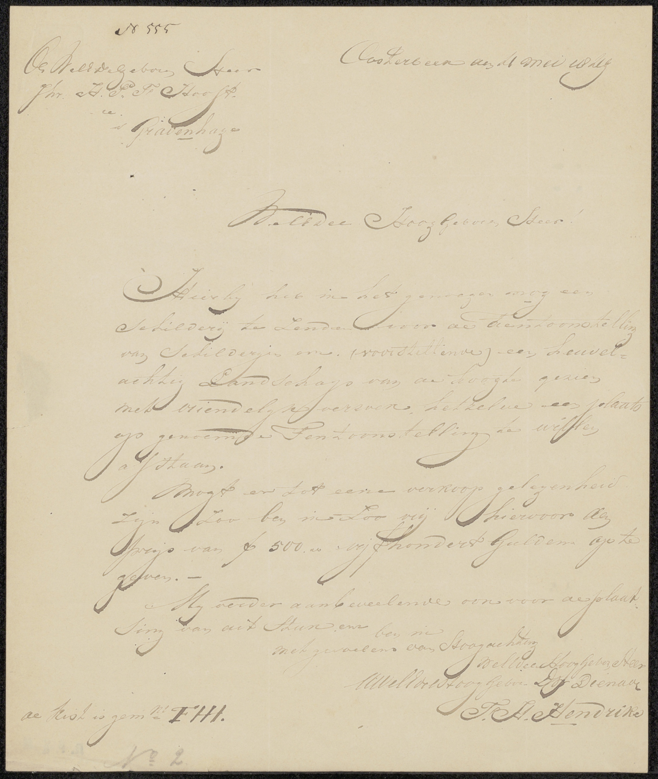 Brief aan jonkheer H.P.F. Hooft, secretaris van de c...