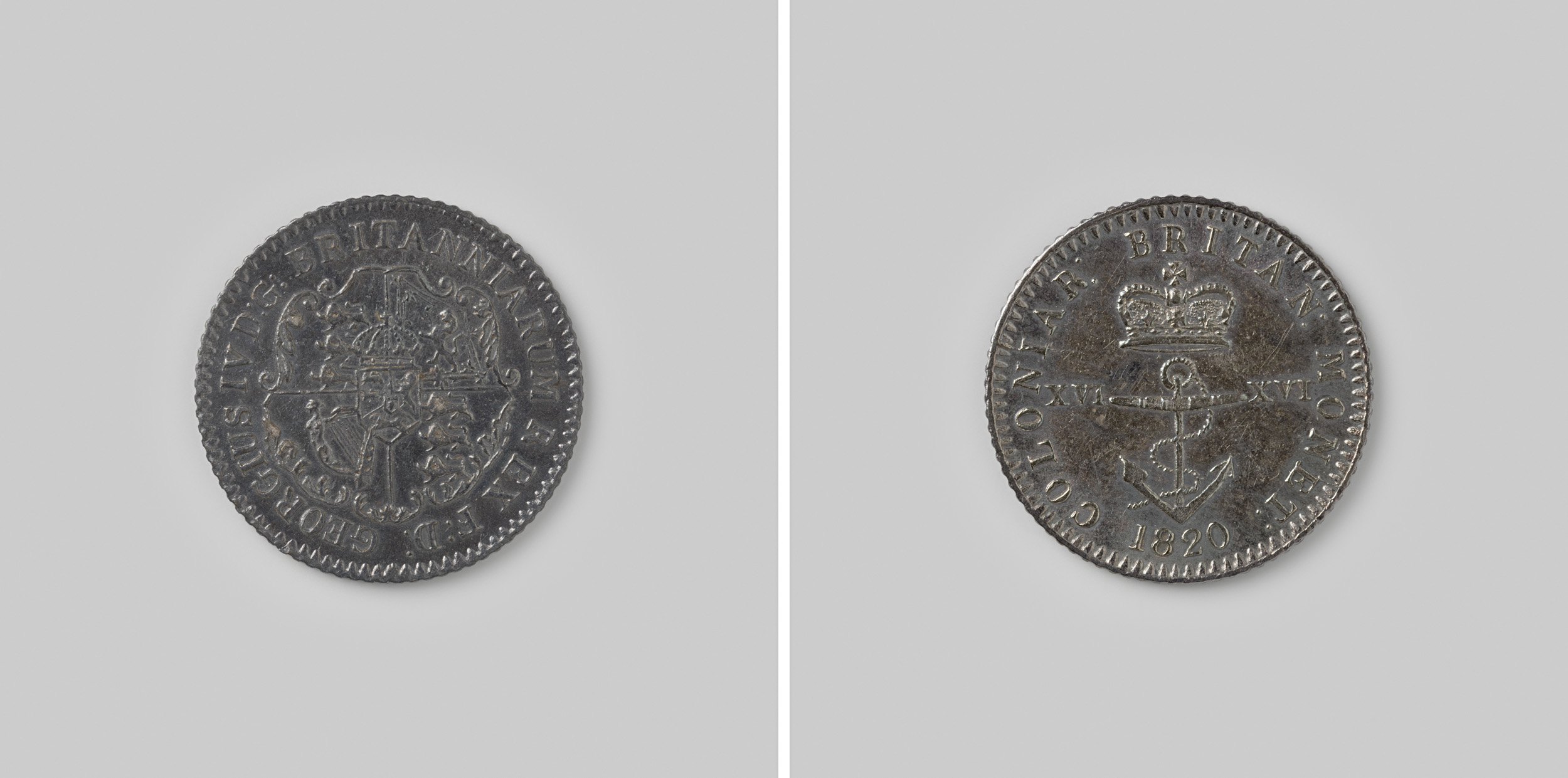 1/4 dollar voor Mauritius van koning George IV, 1820