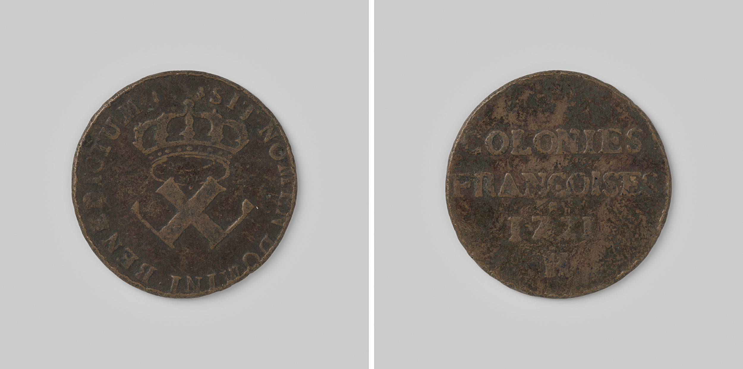 9 deniers van de Franse koloniën tijdens Lodewijk XV...