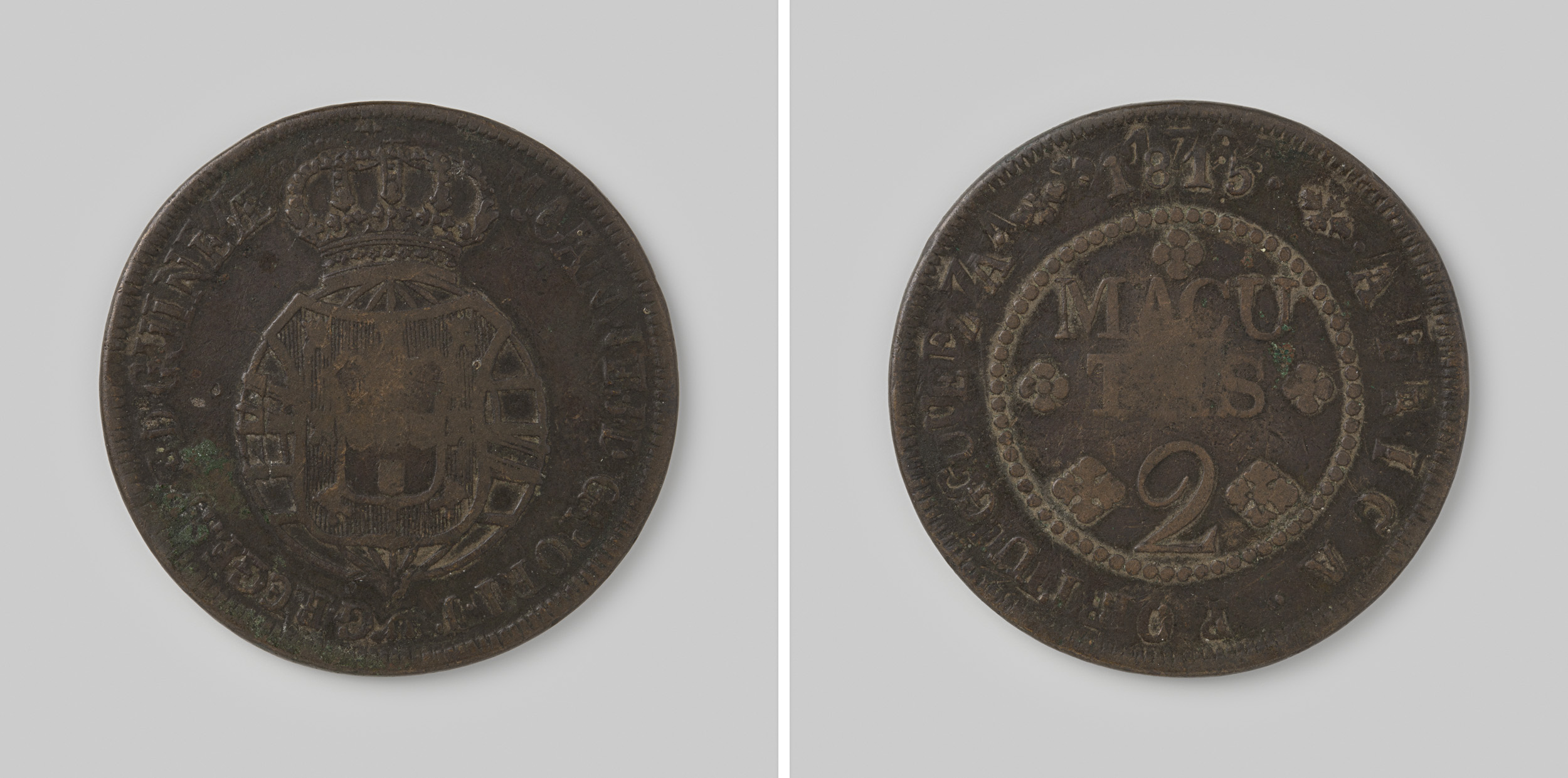 2 macutas uit Angola van de Portugese koning Joao VI...