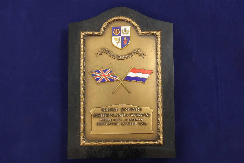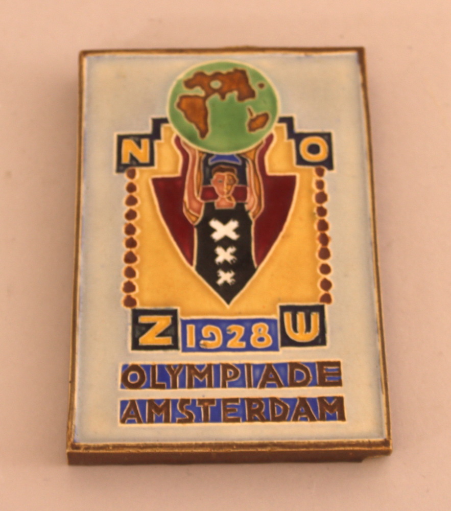 Sier/wandbord plateelbakkery Zuid Holland .Olympisch...