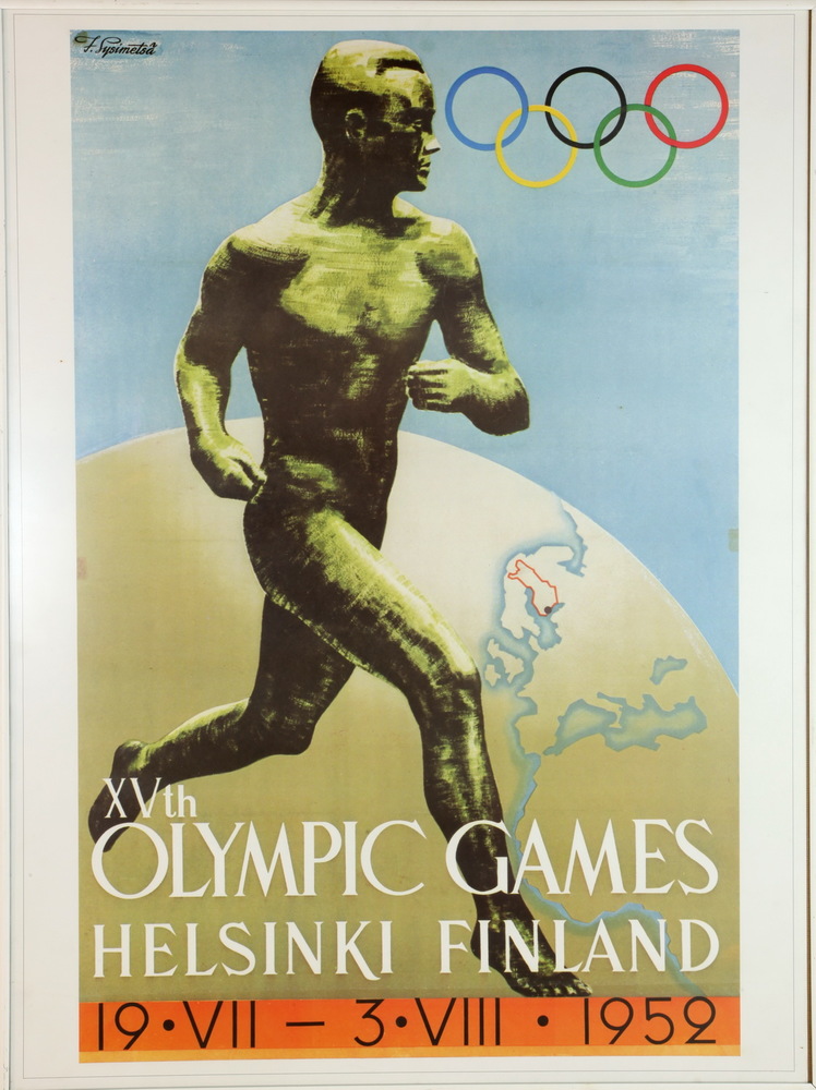Koperen wandbord 'voetballer' van de Olympische Zome...