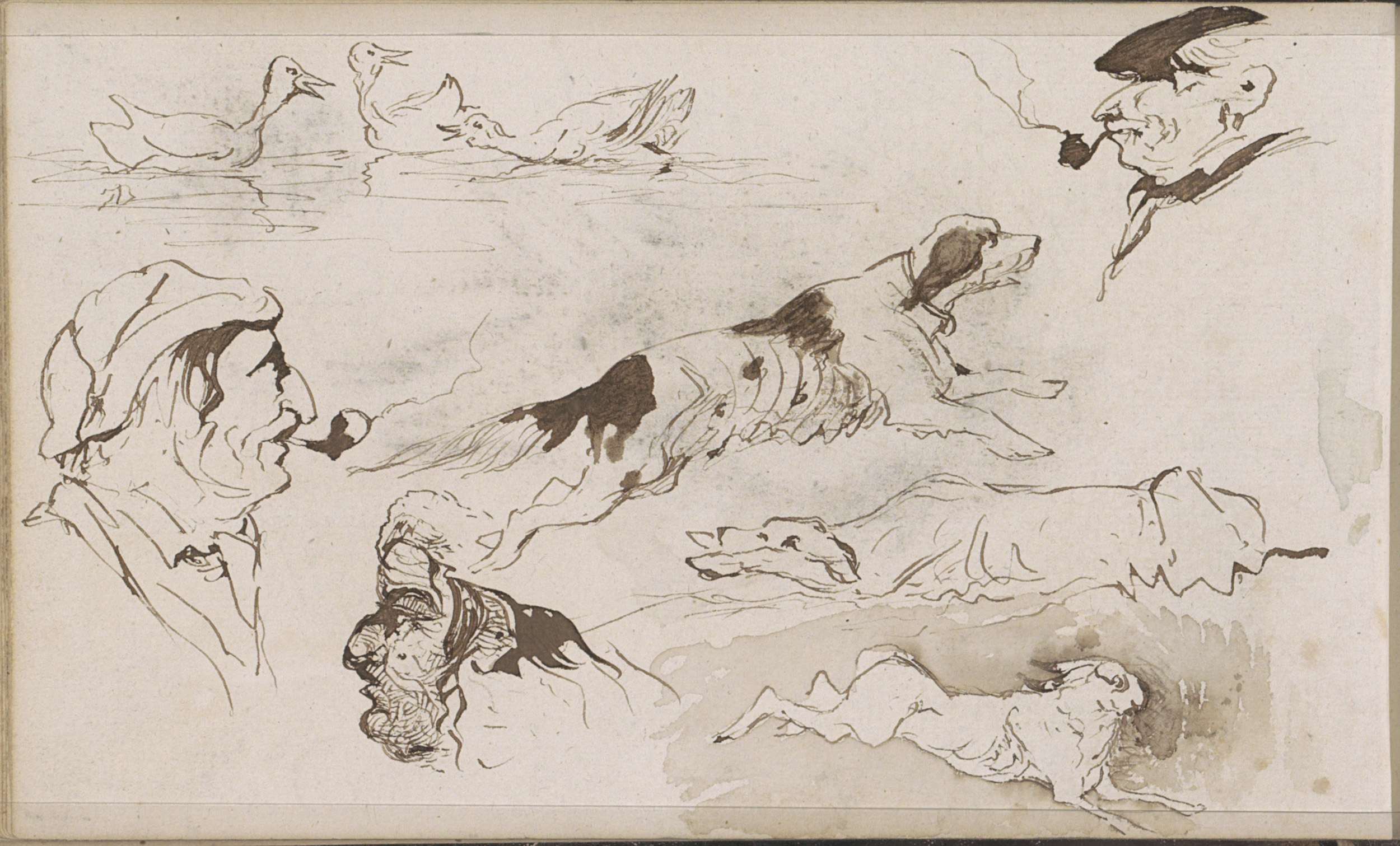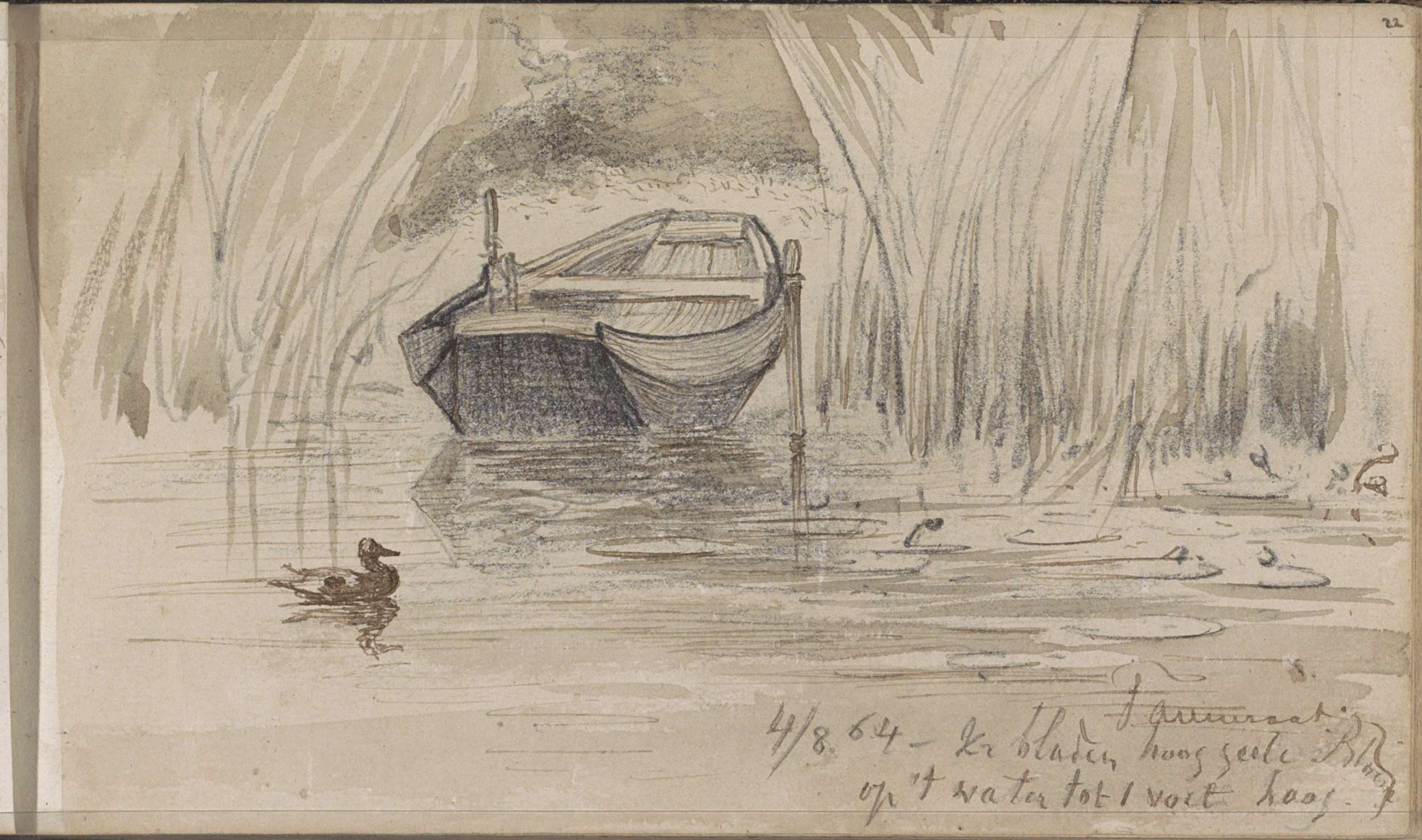 Eenden, een hond in het gras en de Lange Kade aan de...