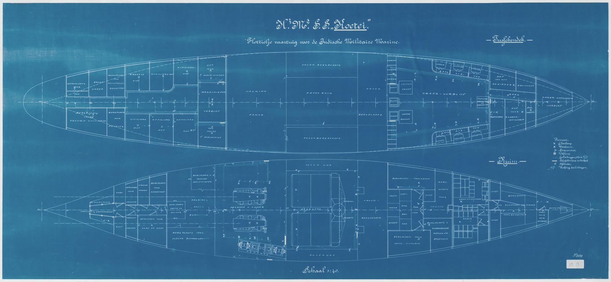 Tuigplan van het vracht- en passagiersschip Van der ...