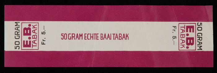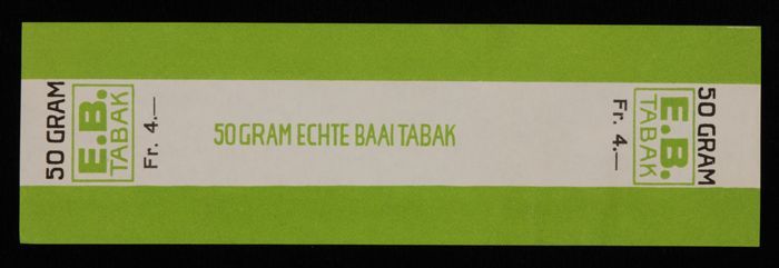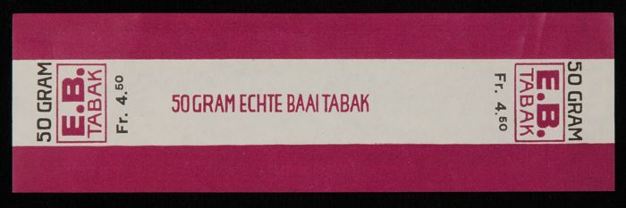 Label, E.B. TABAK, ECHTE BAAI TABAK, 50 GRAM, Fr. 5,...