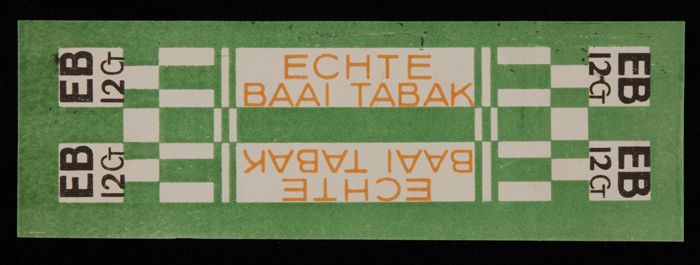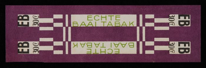 Label met zwarte vlakken, E.B. TABAK, ECHTE BAAI TAB...