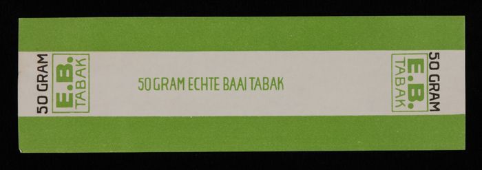 Label, E.B. TABAK, ECHTE BAAI TABAK, 50 GRAM, 20 CEN...