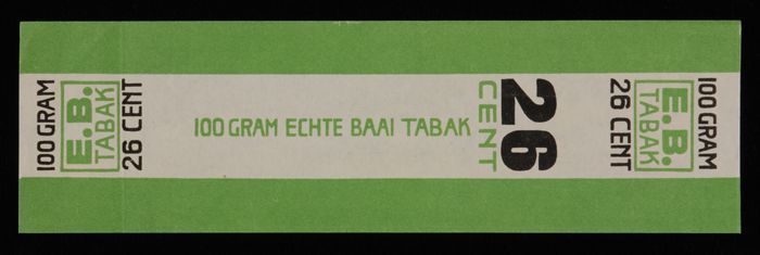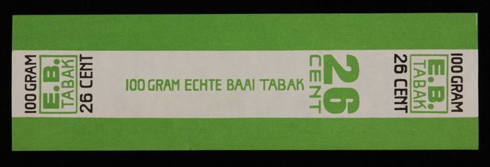 Label, E.B. TABAK, ECHTE BAAI TABAK, 100 GRAM, 26 CE...