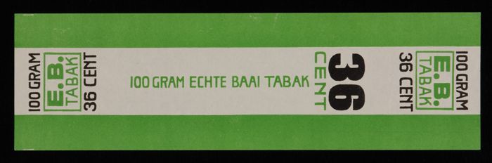 Label, E.B. TABAK, ECHTE BAAI TABAK, 100 GRAM, 36 CE...
