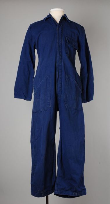 Jongensoverall, van kobaltblauw keperkatoen met knoo...