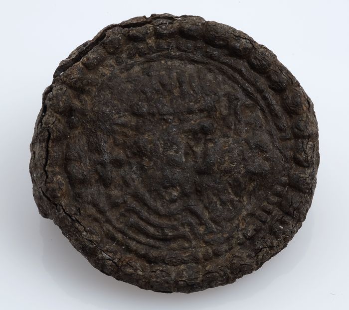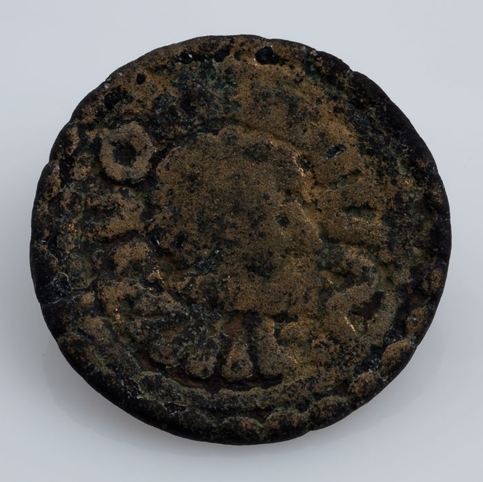 Fibula of mantelspeld, schijffibula met buste en oms...