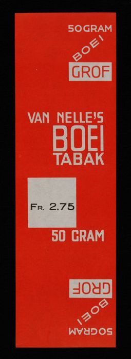 Label, rood, VAN NELLE´S BOEI TABAK, Fr. 2.50, 50 GRAM