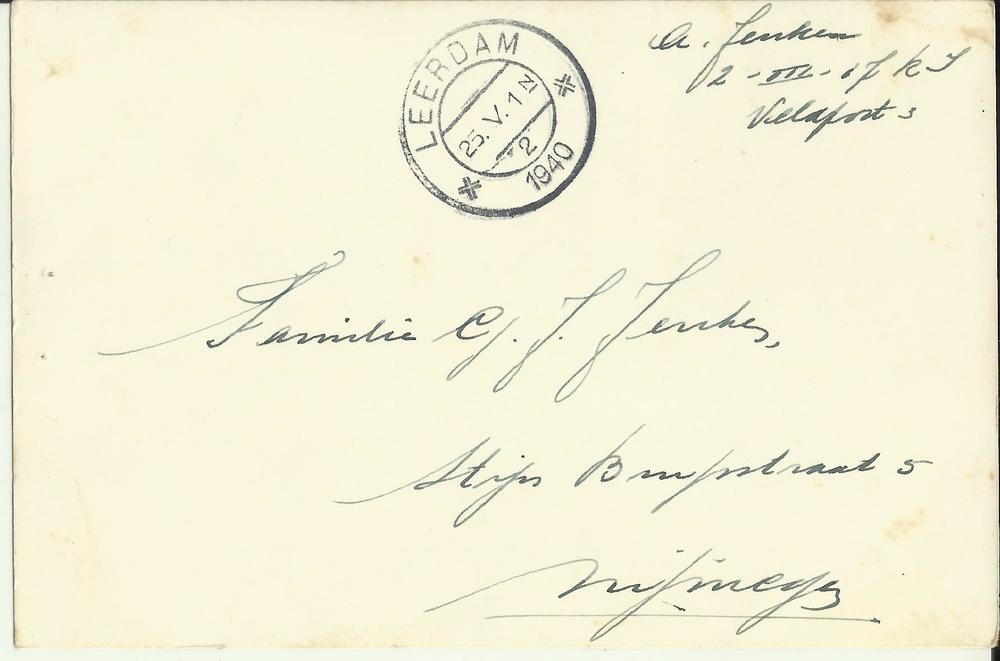 Kaart van Antoon Jeuken aan familie, 25 mei 1940