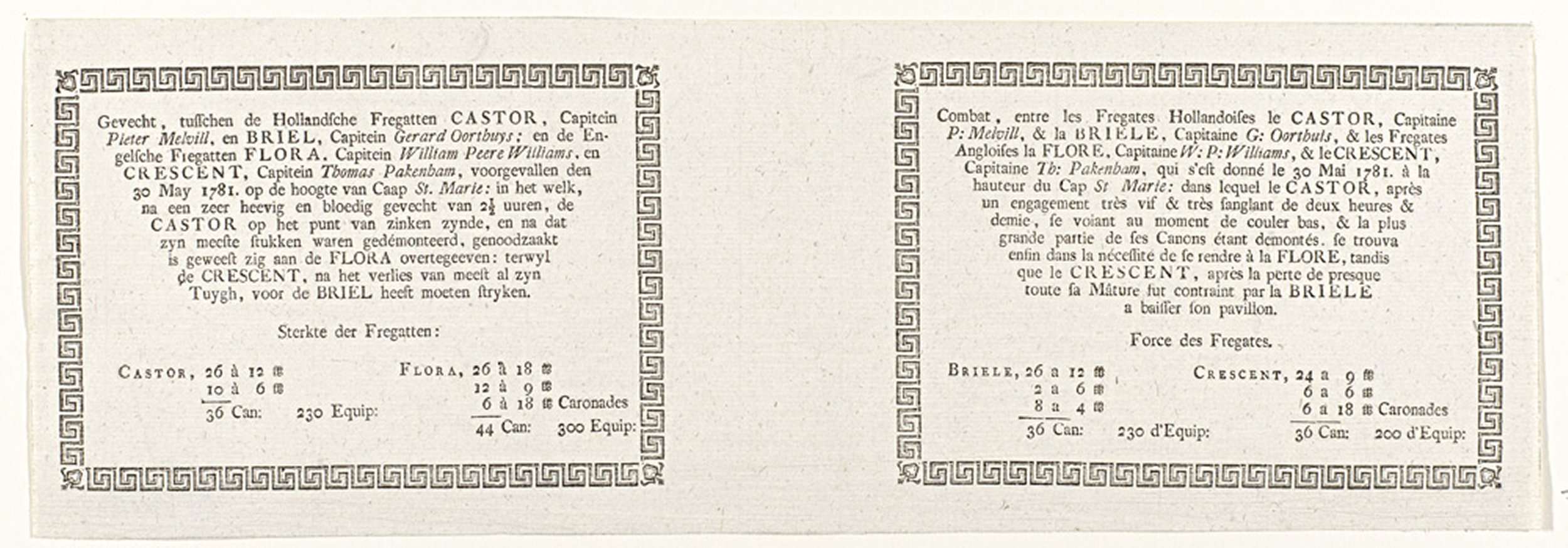 Tekstblad bij de prent van de zeeslag bij Cadiz, 1781
